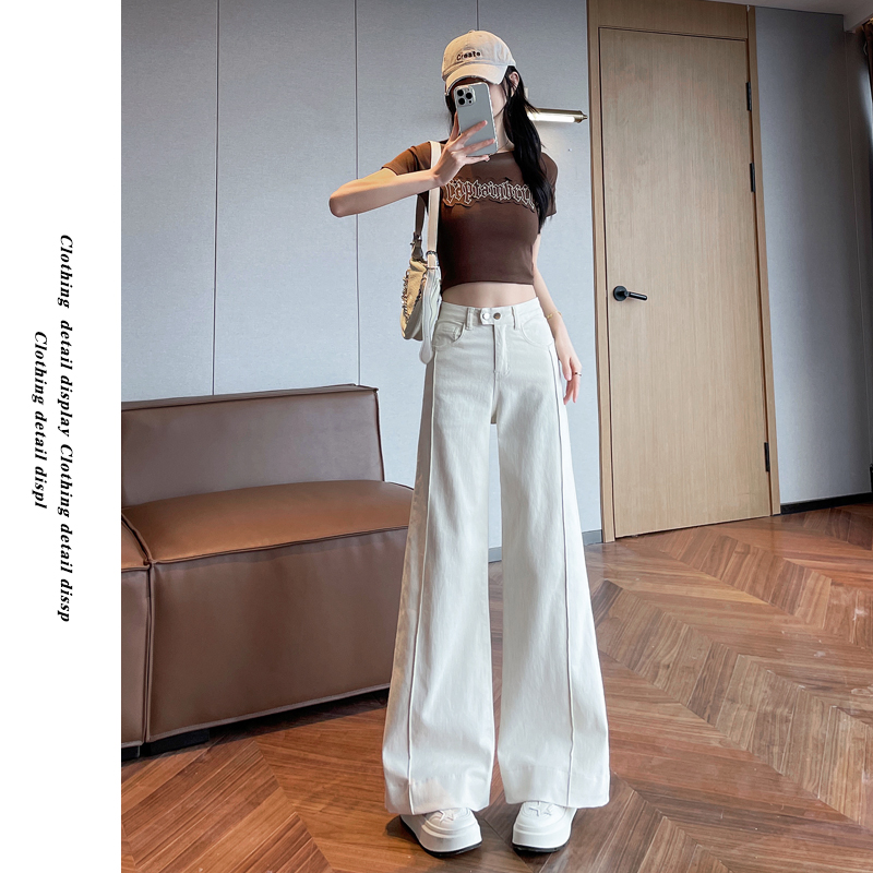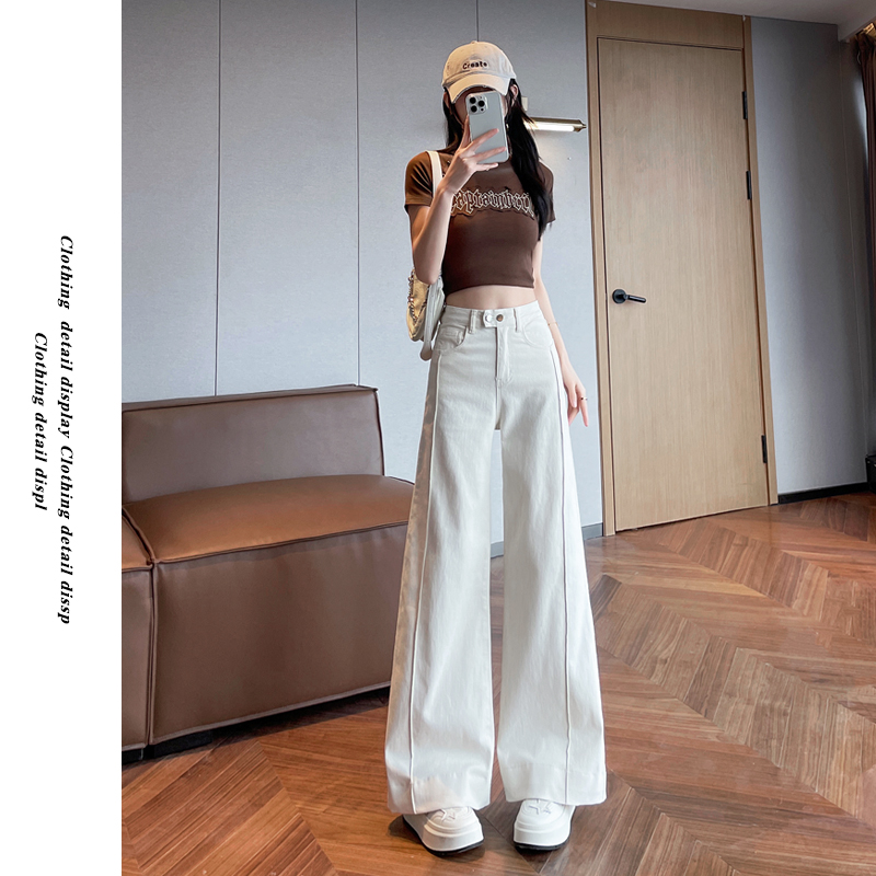 米杏色阔腿牛仔裤女春秋2025新款爆款高腰遮胯显瘦弹力微喇拖地裤