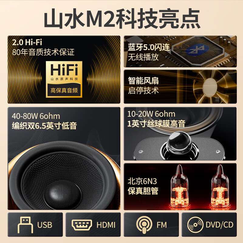 山水M2升级版胆机功放电子管前级发烧级HIFI组合音响家用音箱套装