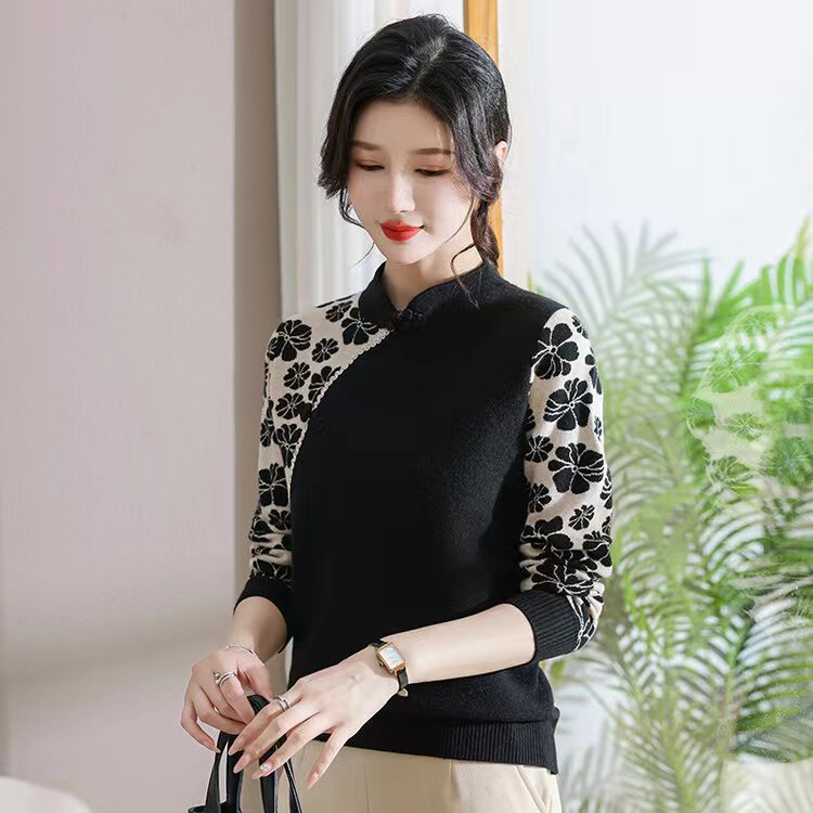 秋季新款气质妈妈装打底衫洋气复古中年女士毛衣女加厚保暖上衣
