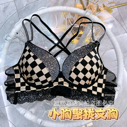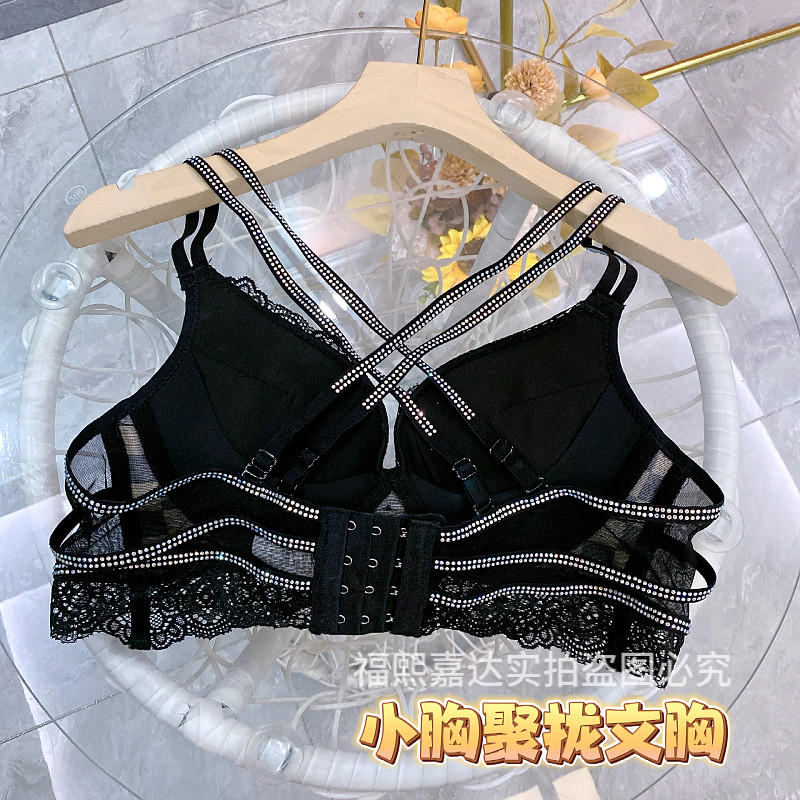 超厚文胸女加厚聚拢上托小胸性感亮钻美背内衣无钢圈调整型胸罩