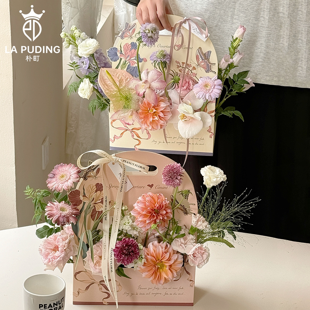 朴町爱在花丛手提袋花艺包装材料