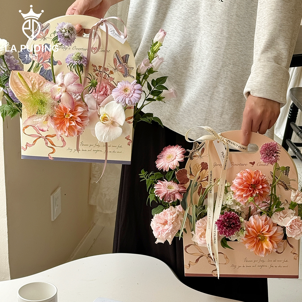 LA朴町 爱在花丛手提袋鲜花束插花礼品盒手工花艺礼物diy包装材料