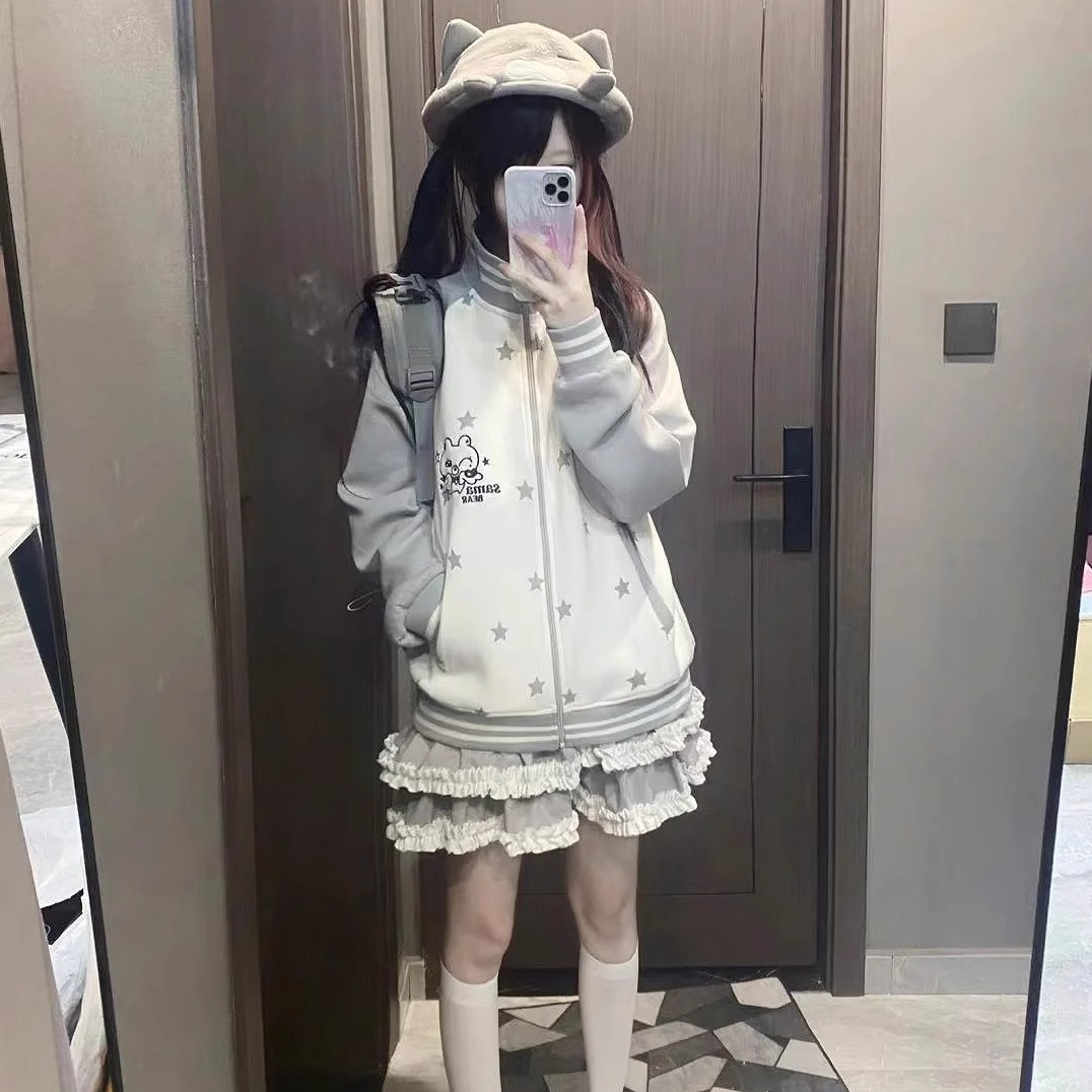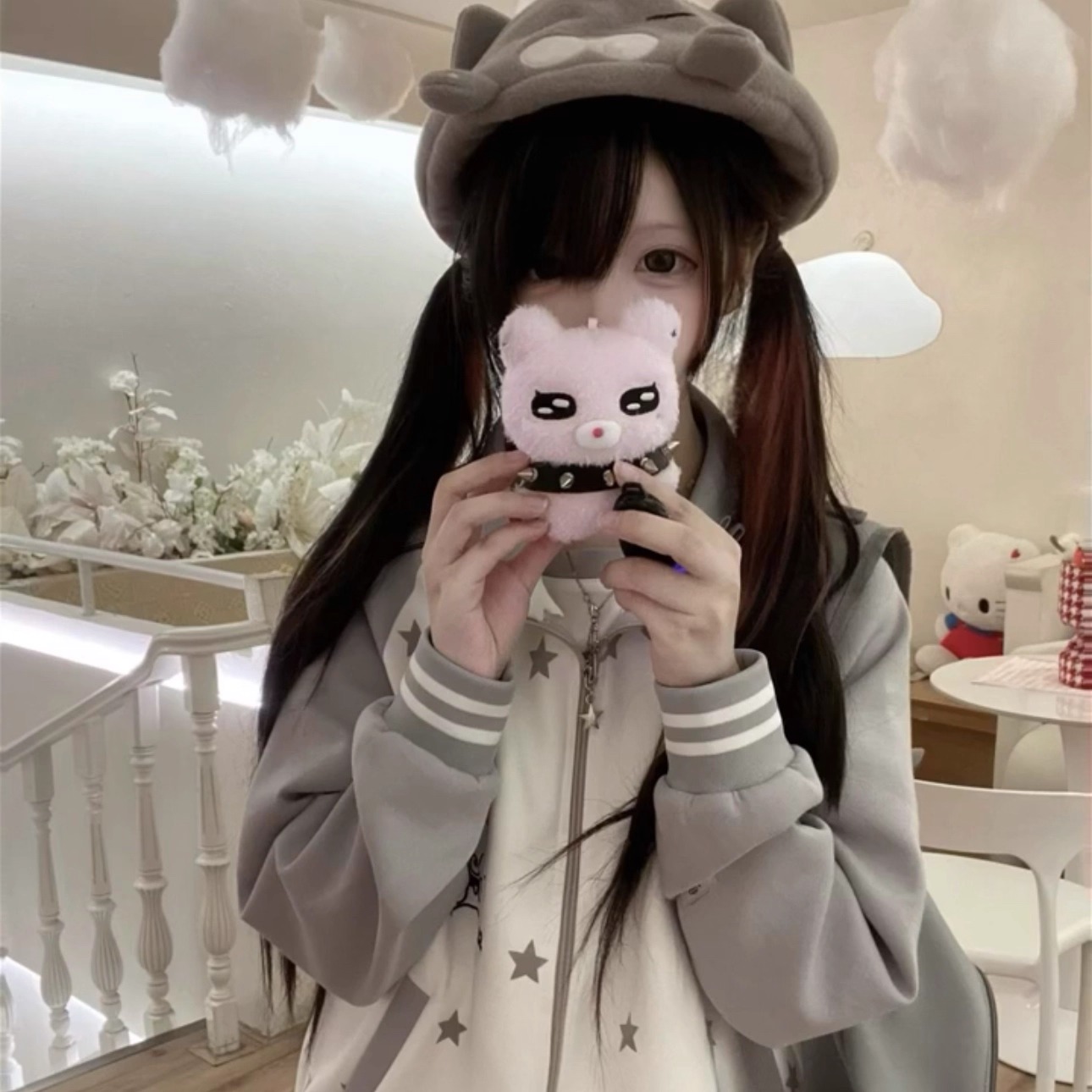 宅系亚文化星星拼接撞色开衫卫衣女2025新款宽松别致萌妹插肩外套