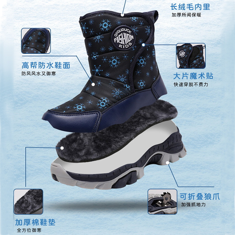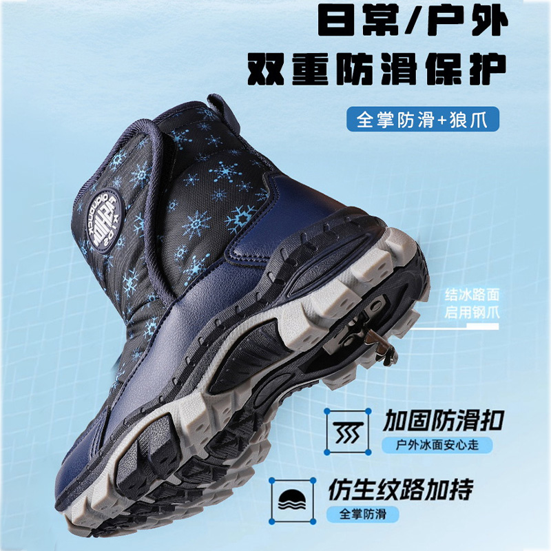 女童棉鞋钢爪儿童雪地靴南尉盾冬季防水防滑加绒保暖男童运动棉靴