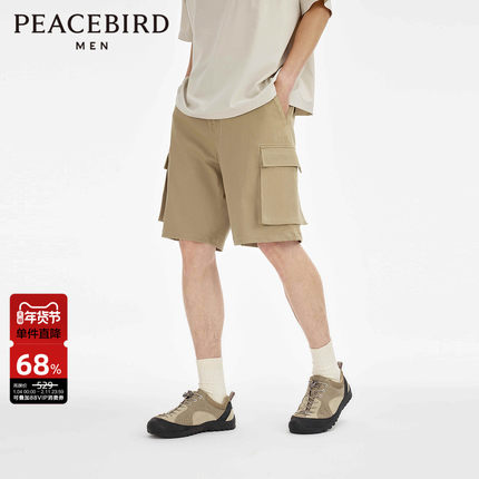 太平鸟男装 休闲工装中短裤卡其色五分短裤潮牌