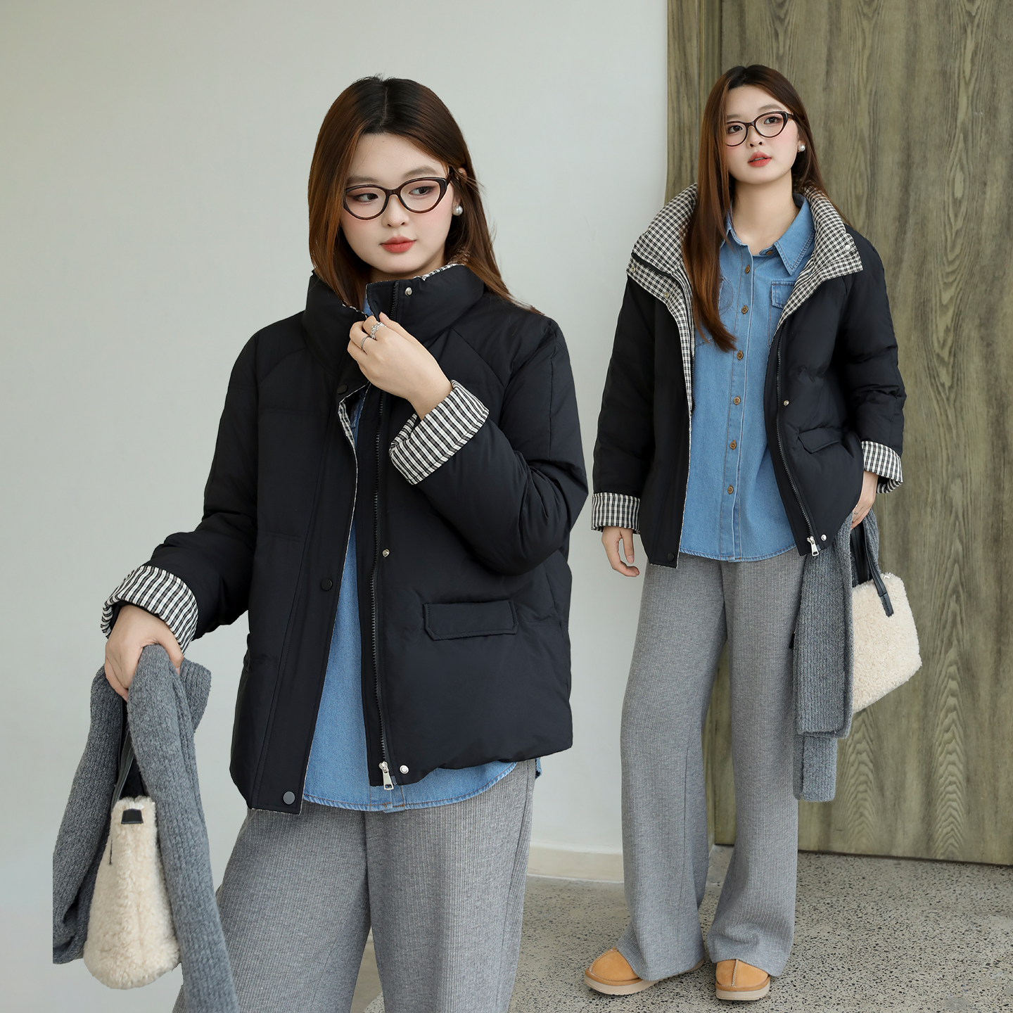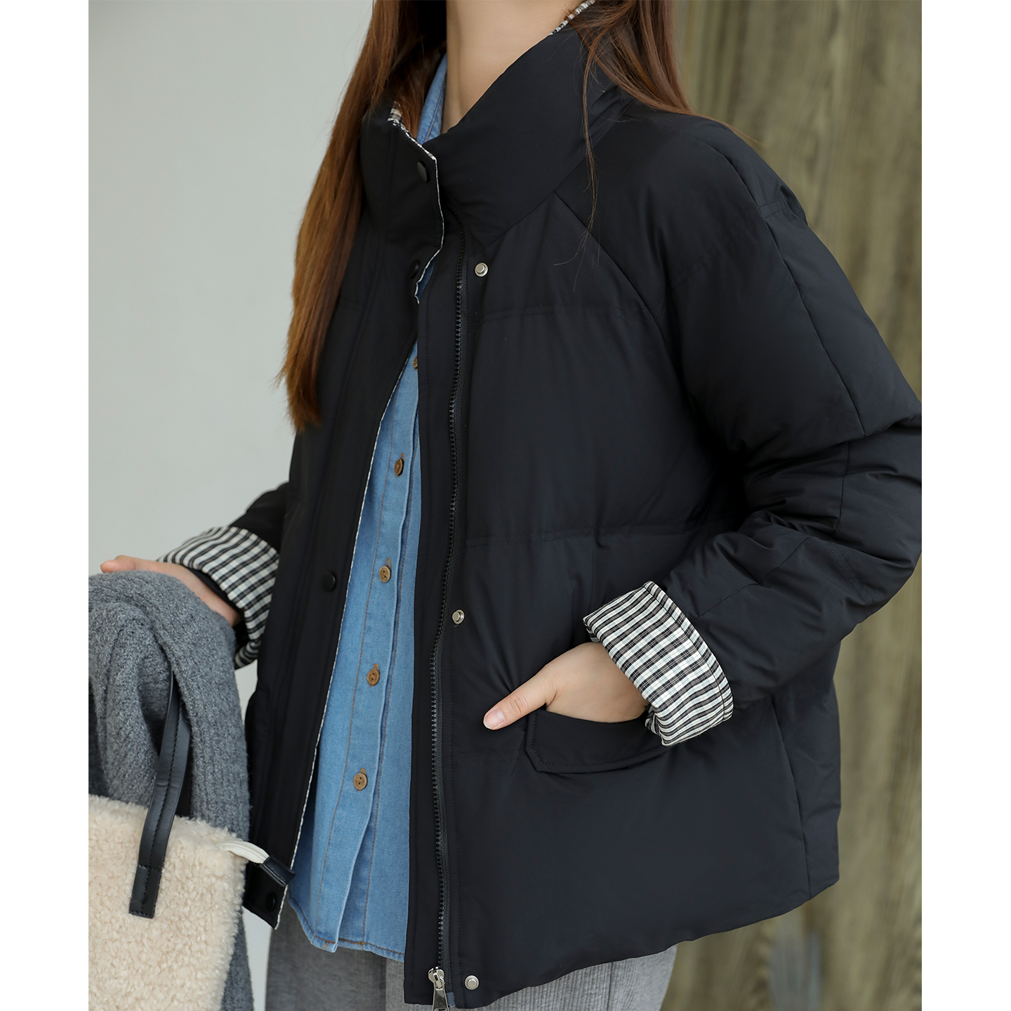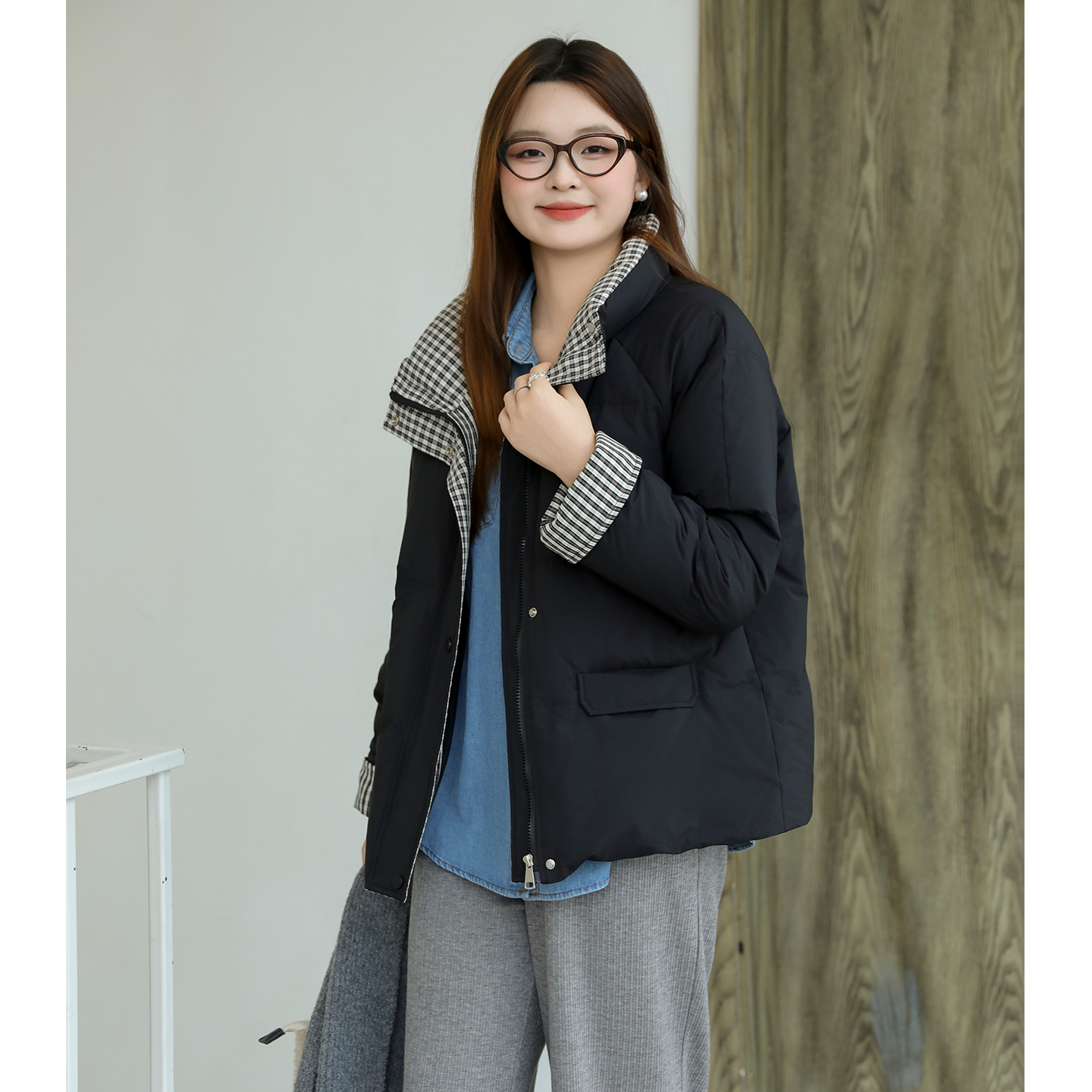 DM100黑色格纹拼接羽绒服