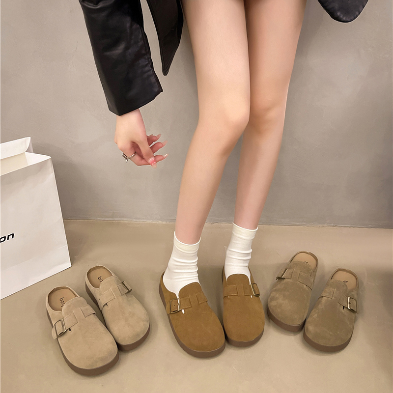 复古厚底百搭包头半拖鞋女2025春秋新款时尚软底舒适防滑勃肯拖鞋