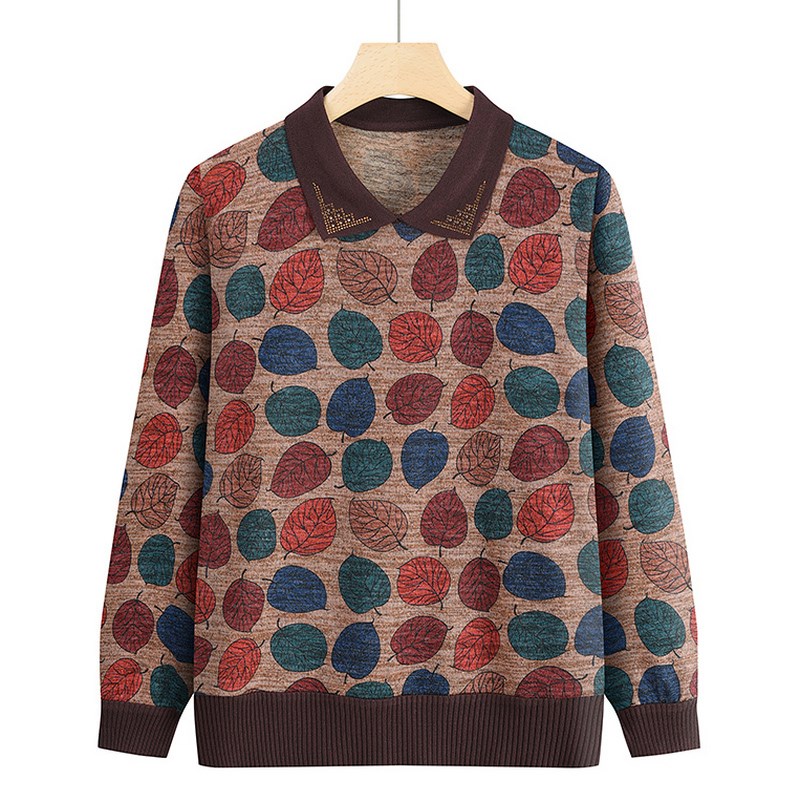 妈妈春装新款套头T恤衫中老年女装奶奶针织上衣老人翻领打底衫