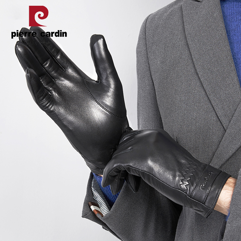 皮尔卡丹正品真皮手套男冬季山羊皮保暖防寒手套骑行摩托车可触屏