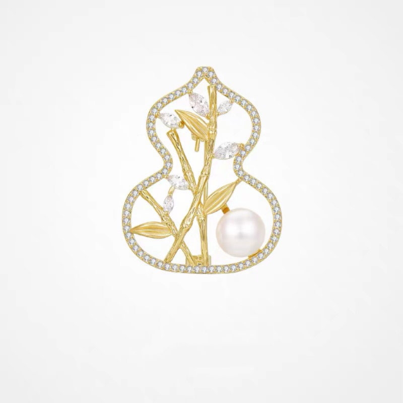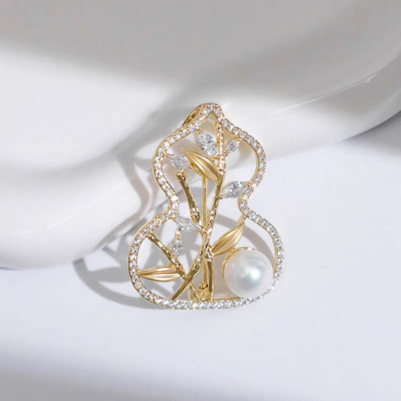 诸暨珍珠金色福禄款胸针小香风气质女人胸花轻奢精致七夕佳节礼物