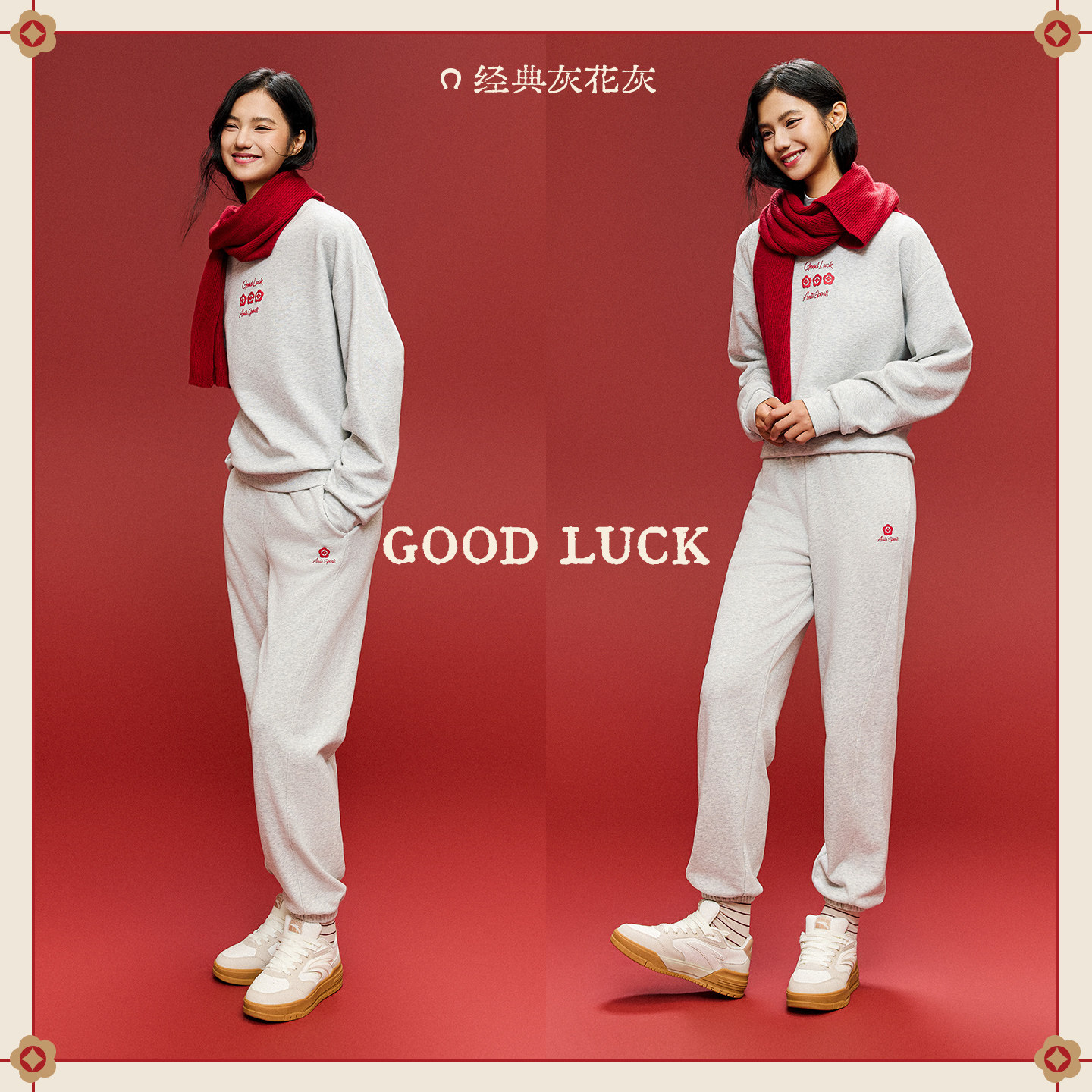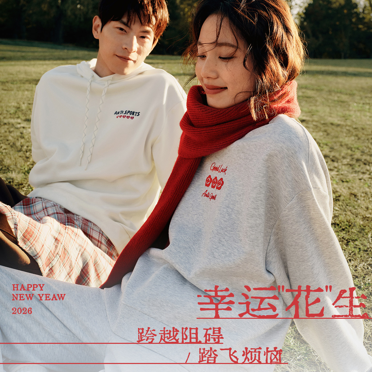安踏好事发生新年红色卫衣女款冬季新款新年宽松长袖加绒保暖上衣