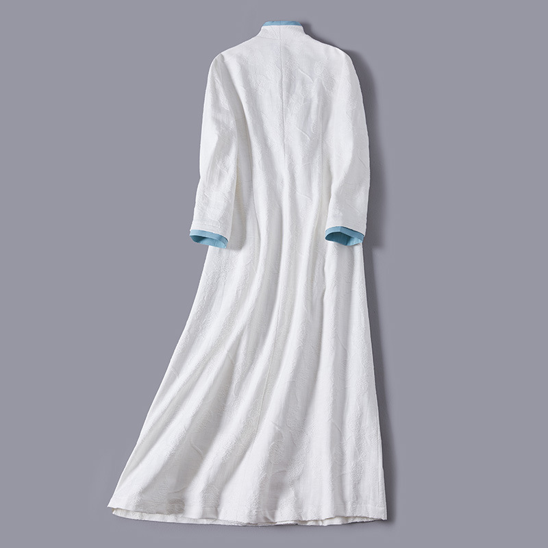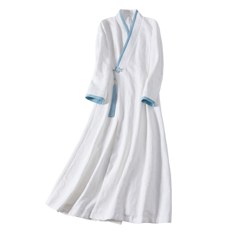 春秋汉服中国风交领长袍中国风复古禅意棉麻盘扣连衣裙文艺茶服女