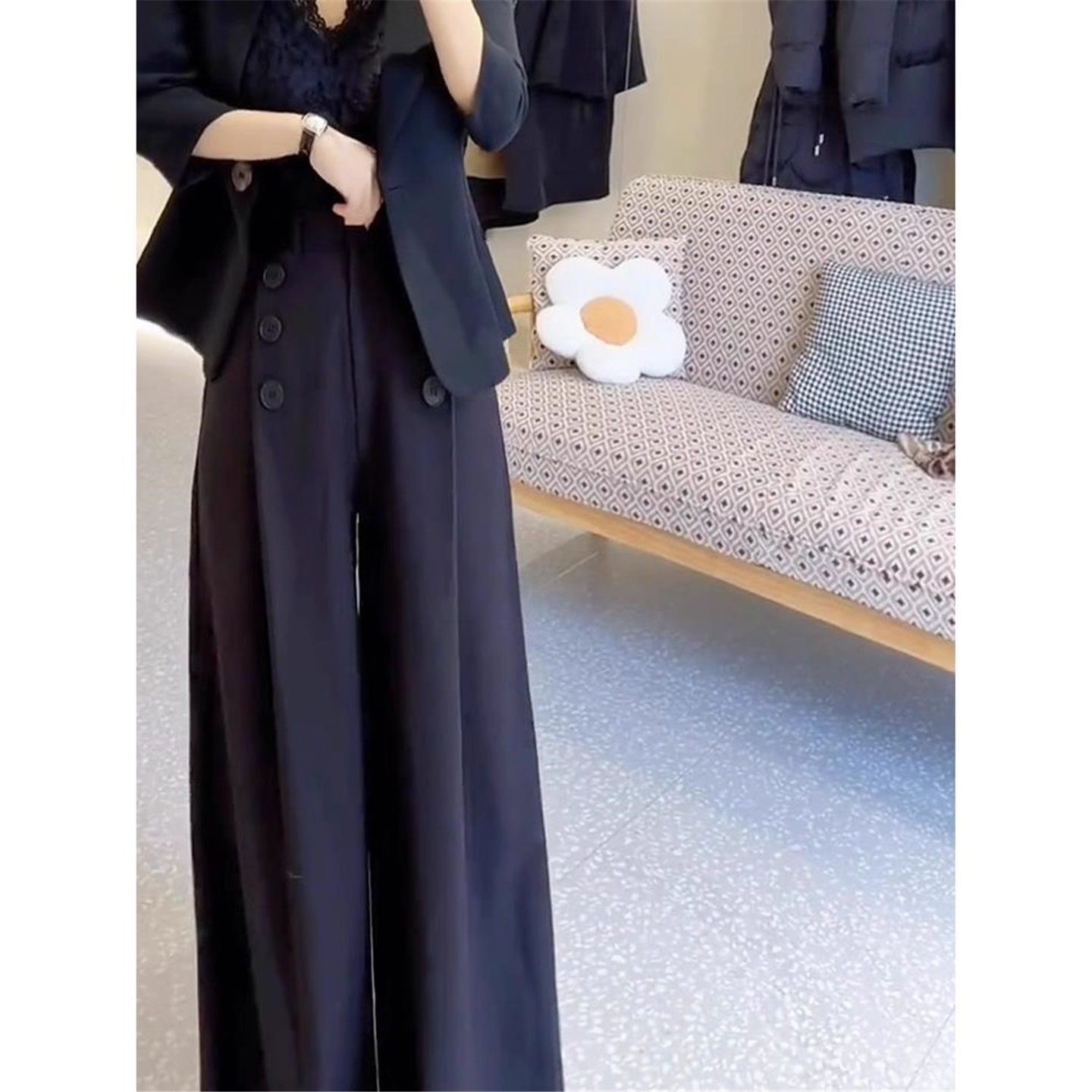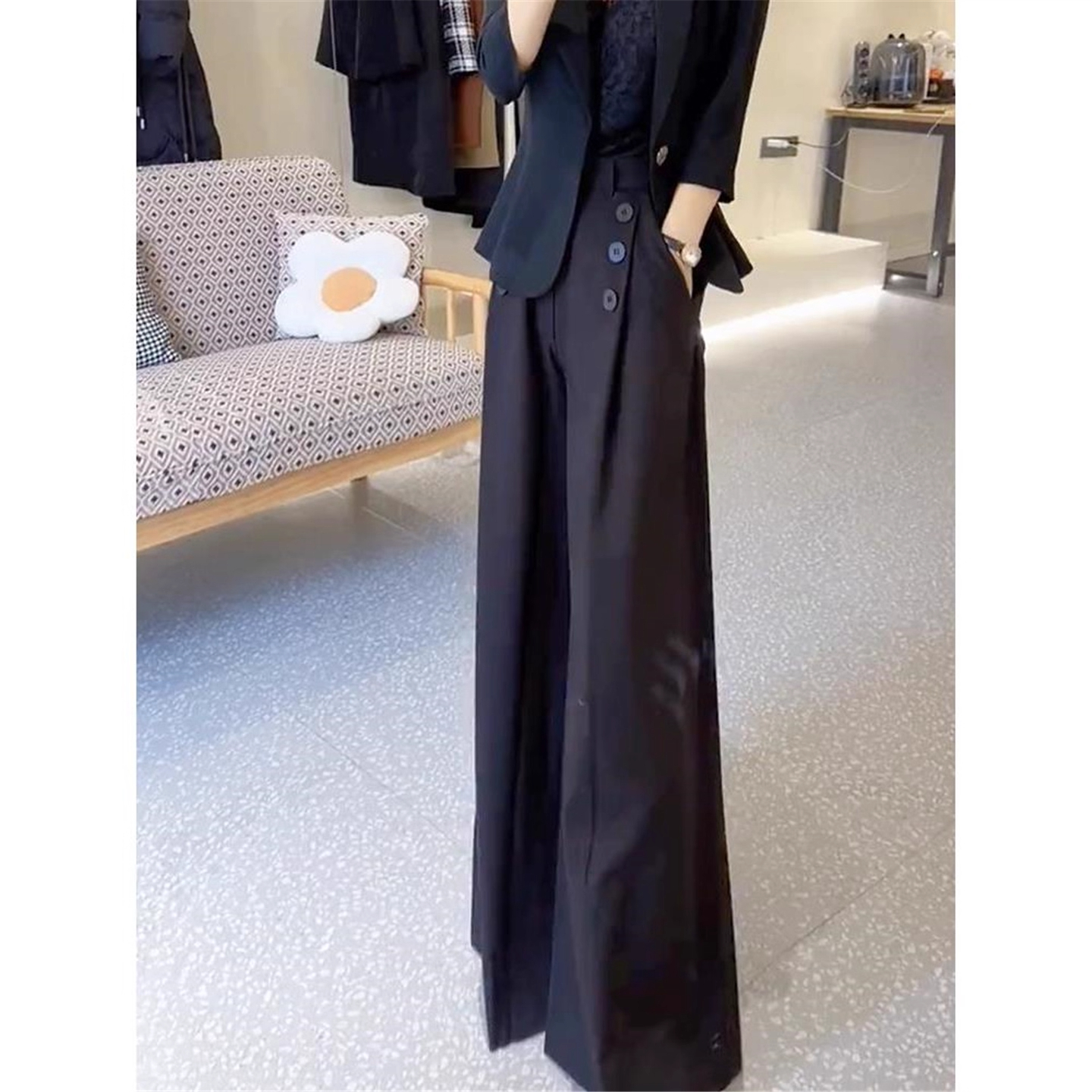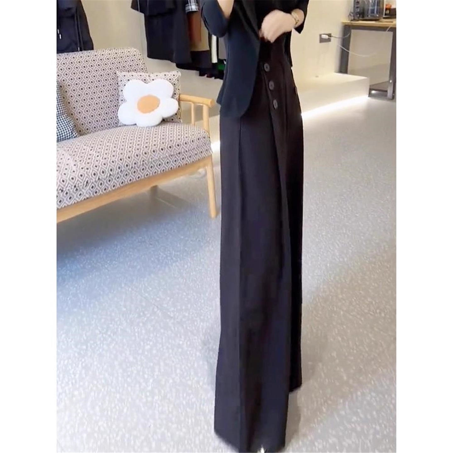 清仓捡漏黑色西装裤女士高腰显瘦直筒阔腿裤设计感加绒妈妈休闲裤