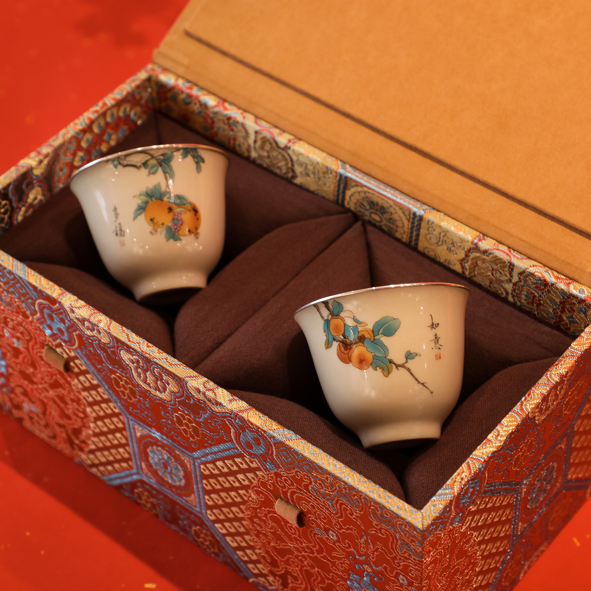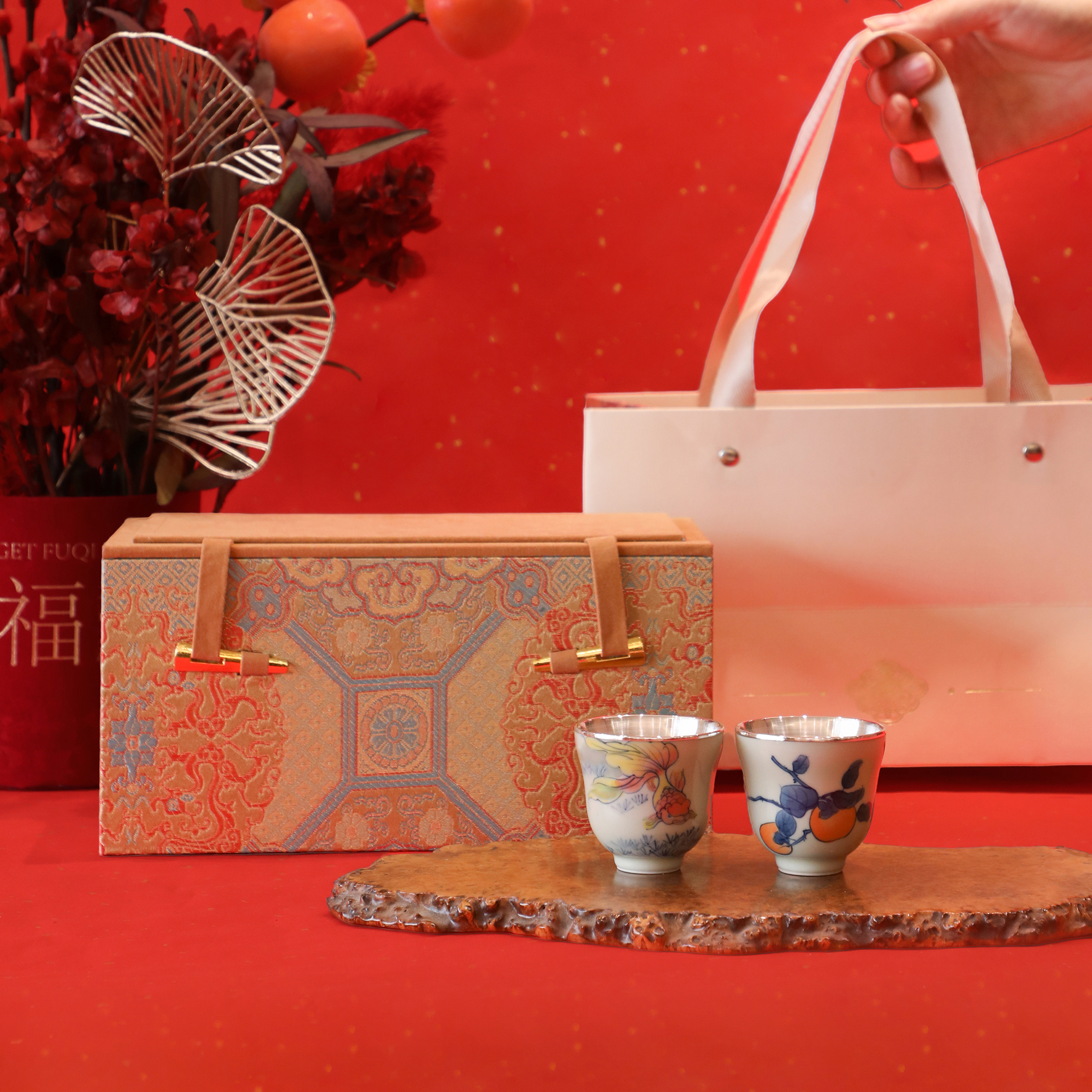 纯银时代银杯茶具礼盒双杯中式