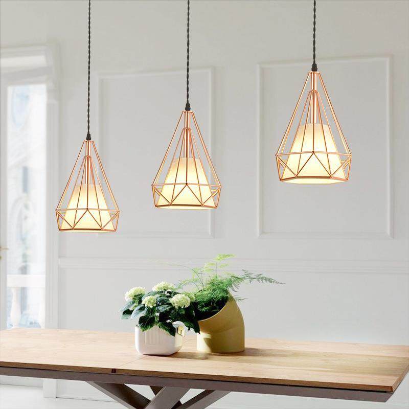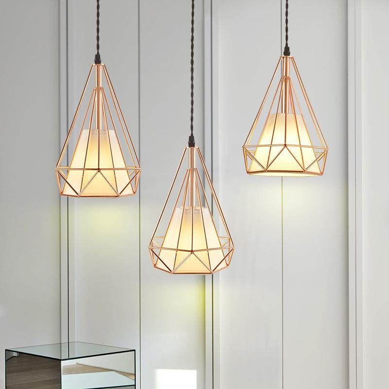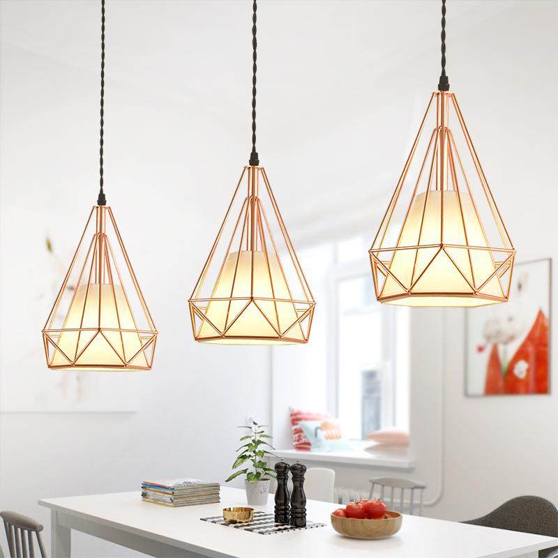 现代简约餐厅灯工业风钻石灯创意个性吧台玫瑰金灯具铁艺吊灯