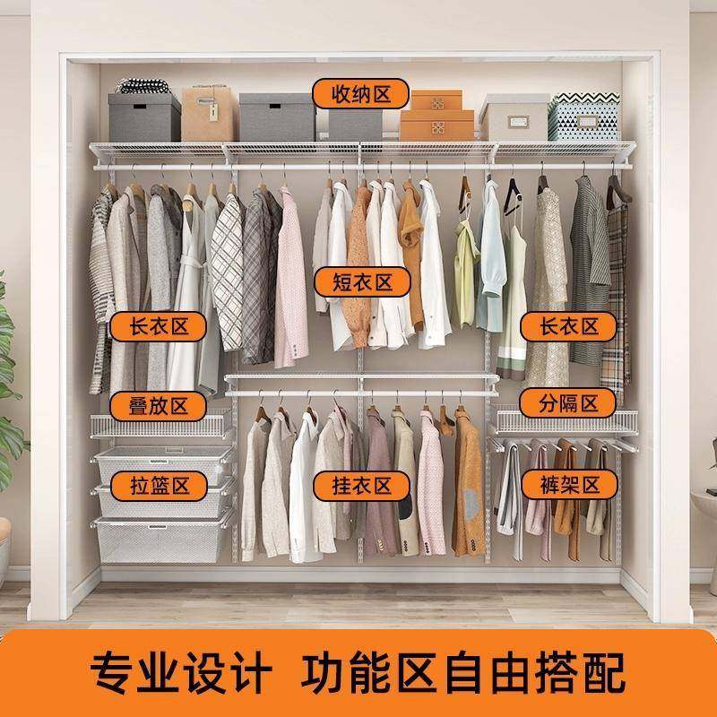 金属衣柜带门开 放式自由组合步入衣柜卧室定制走入式开 放衣帽间
