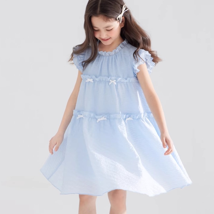【海边精灵】凉感莱赛尔女童海盐公主裙蓝色连衣裙肌理皱感裙子夏