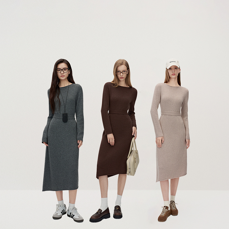 OCHIRLY欧时力澳大利亚100%美丽诺羊毛毛织连衣裙2025春新款