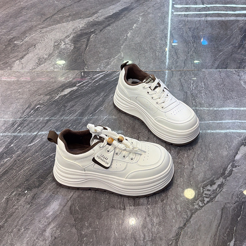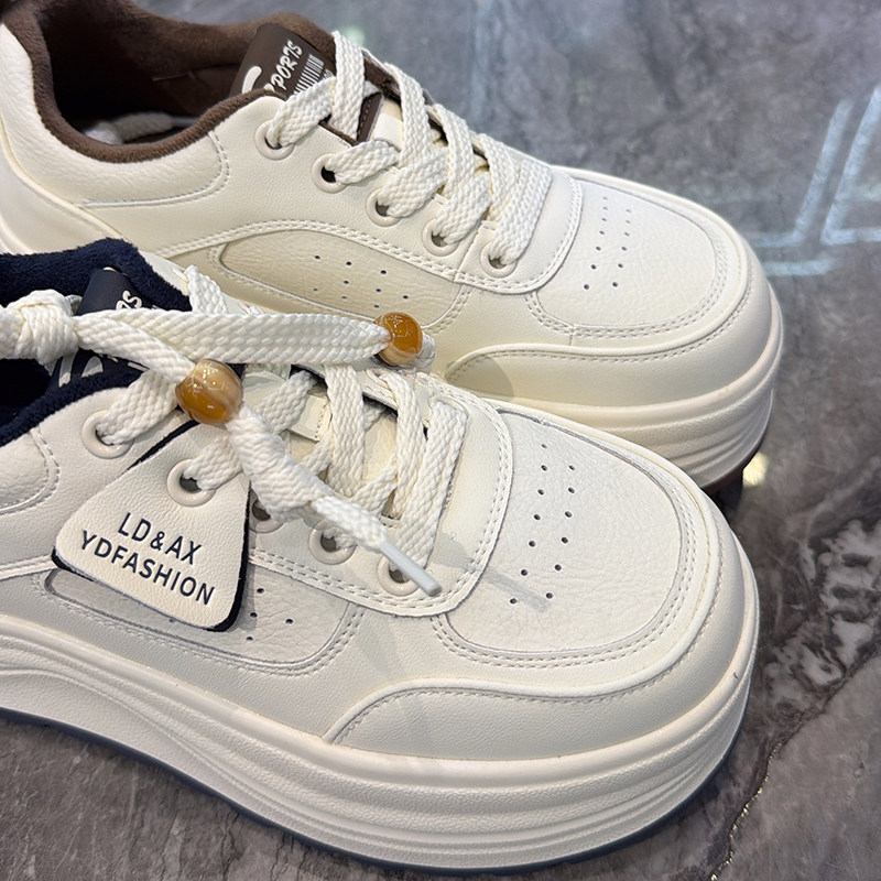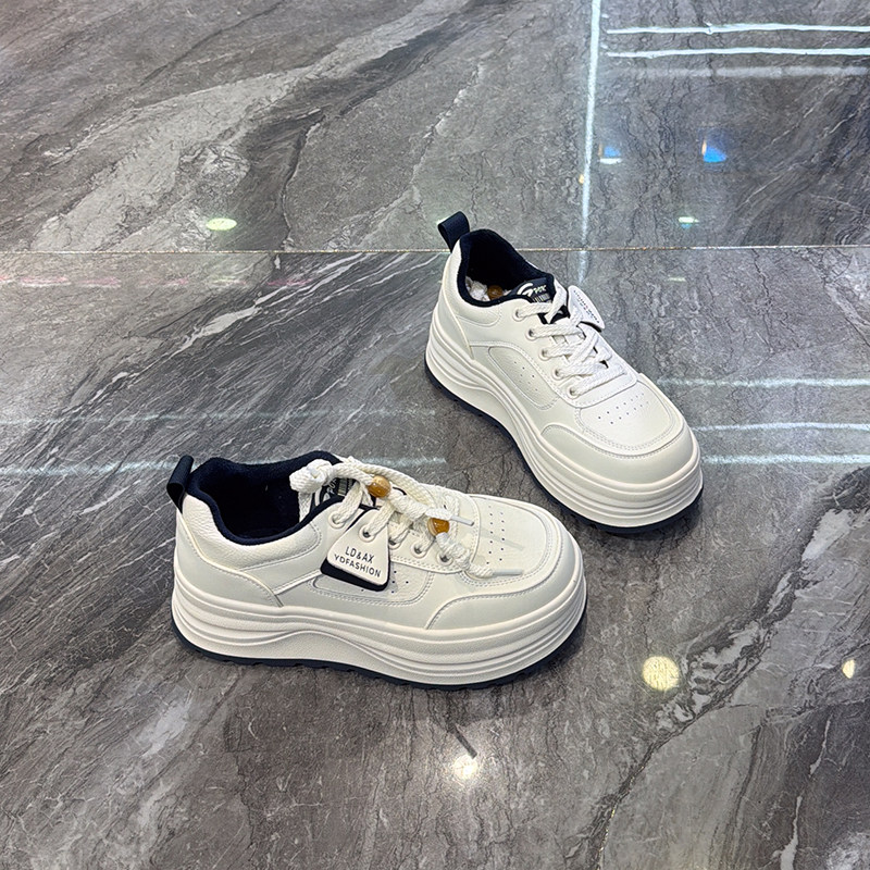 超轻底~真皮增高厚底加绒小白鞋女2025冬季款小个子时尚休闲板鞋