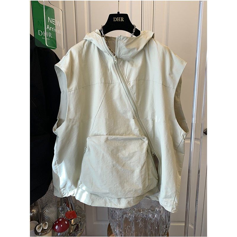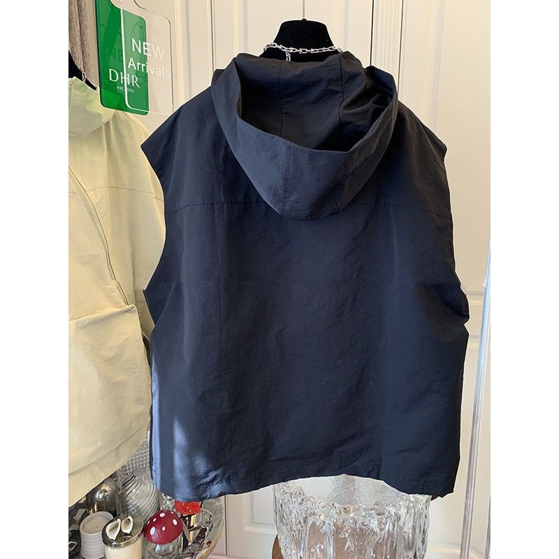 特大码300斤美式潮牌斜拉链连帽马甲背心男女春秋夏宽松无袖外套