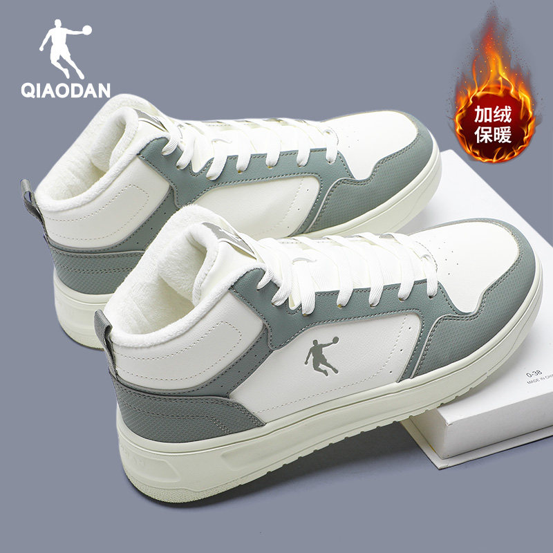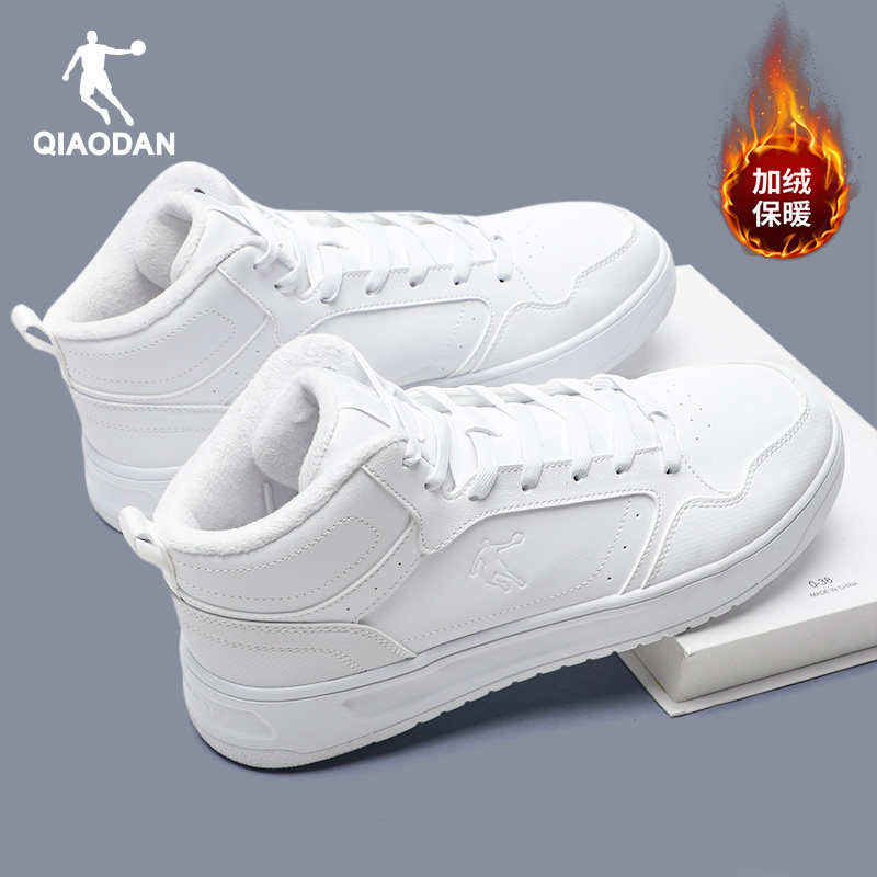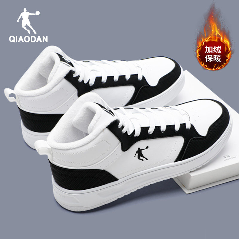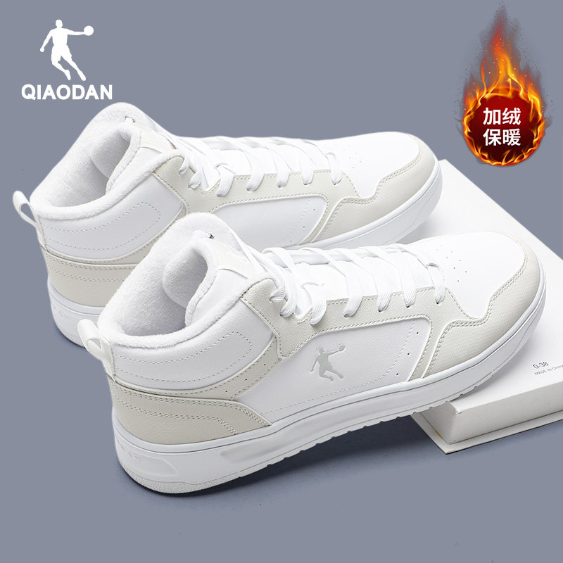乔丹男鞋高帮板鞋男士皮面防水运动鞋男生冬季加绒青少年休闲棉鞋