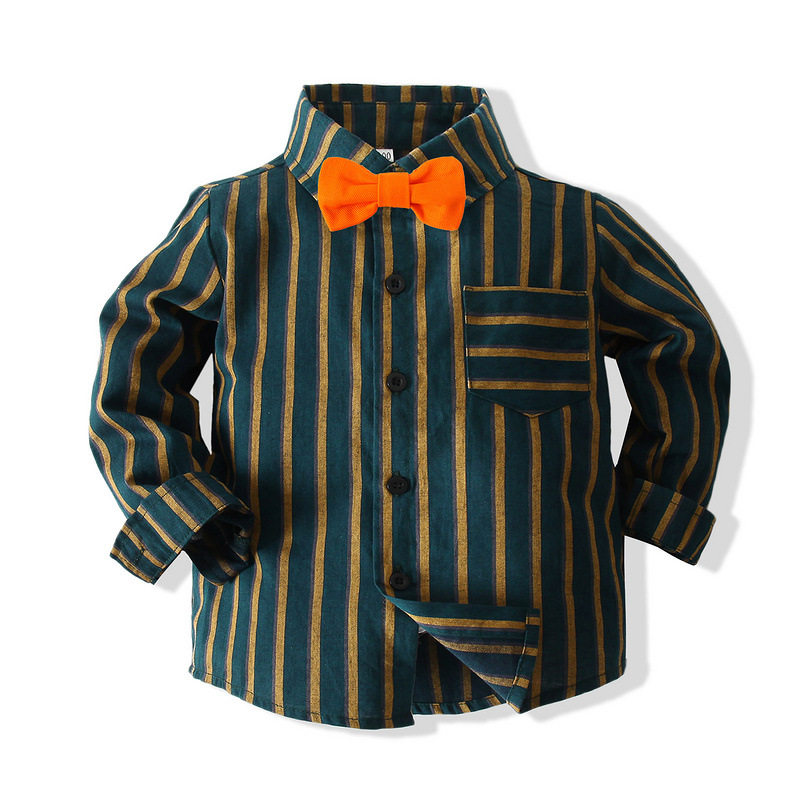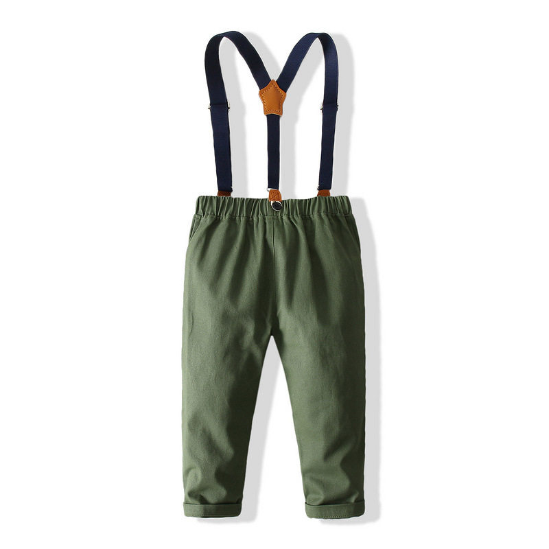 男童长袖衬衫秋季童装宝宝绅士英伦背带裤周岁花童条纹礼服套装
