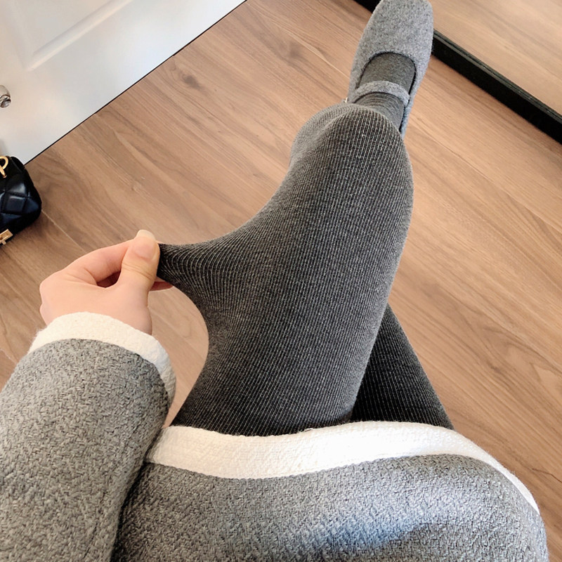 秋冬季加绒烟灰色连裤袜女加厚深灰色保暖打底裤袜条纹黑色踩脚袜