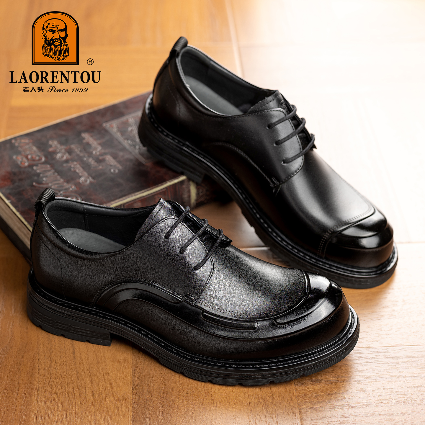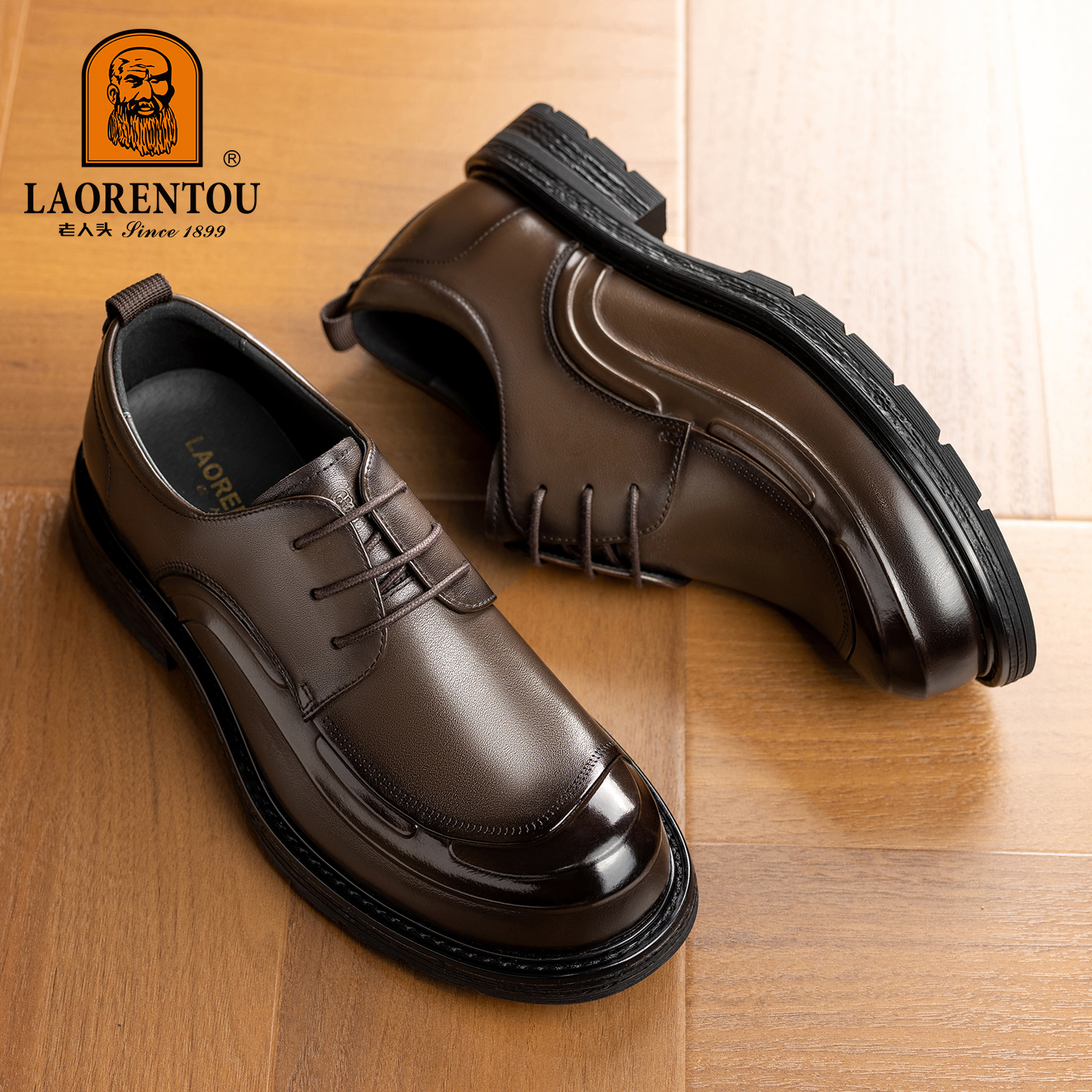 老人头男鞋2025新款真皮厚底软面商务休闲皮鞋男士英伦风结婚皮鞋