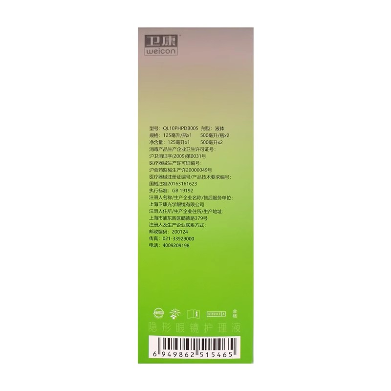 卫康隐形近视眼镜护理液500+125ml大小瓶便携美瞳药水官网正品