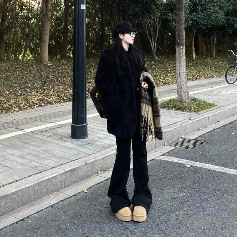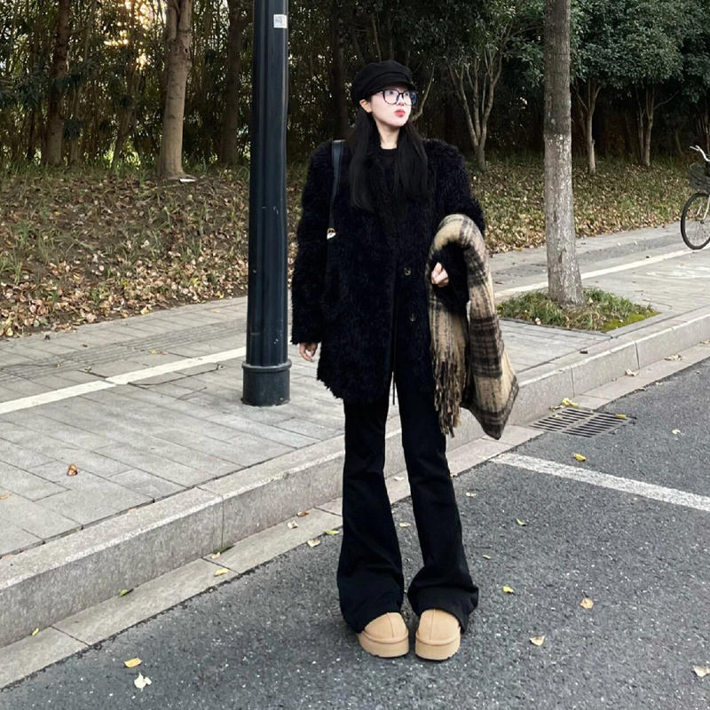 黑色修身微喇叭牛仔裤女2025春秋新款高腰显瘦小个子加绒马蹄裤子