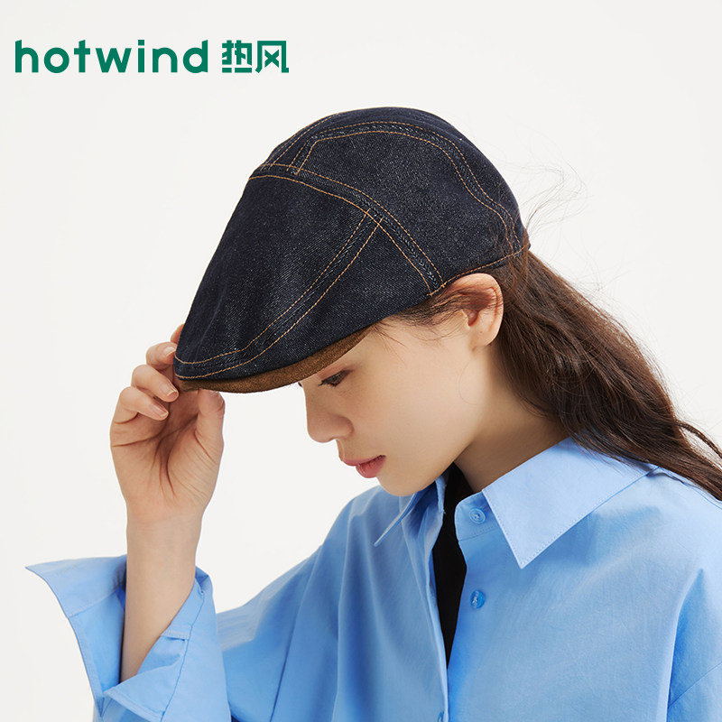 热风女士帽子2026年春季新款牛仔拼接鸭舌帽显脸小美式复古前进帽