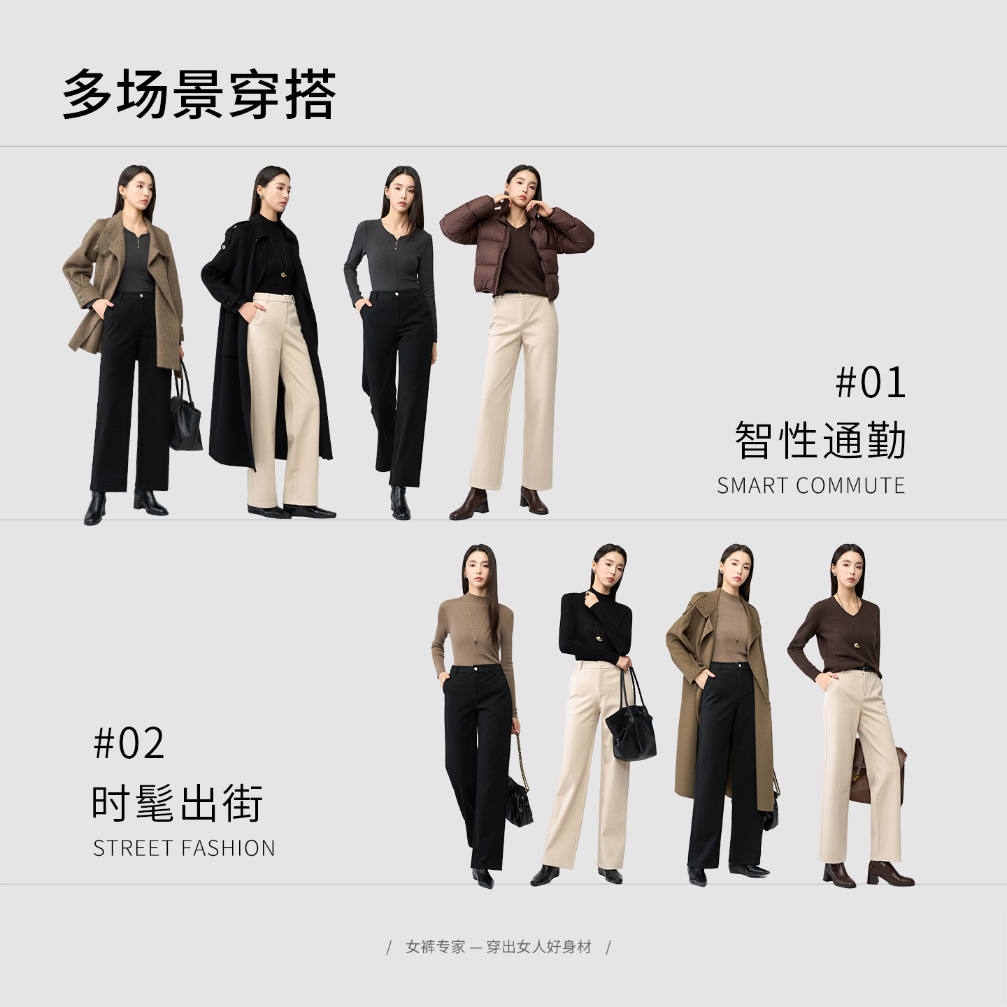 娅丽达窄版阔腿裤女2025冬季新款小个子休闲黑色西装裤米色直筒裤