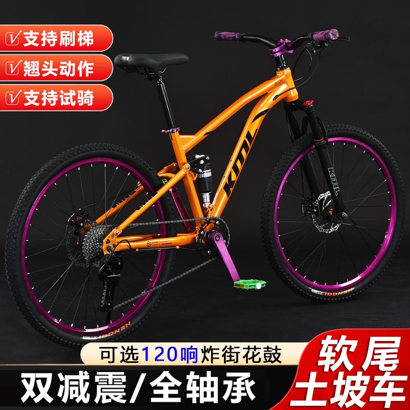 软尾山地自行车变速双减震单车成人青少年学生男女120响炸街土坡