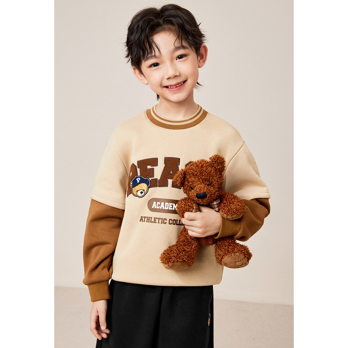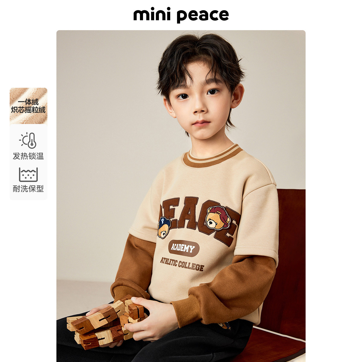 MINIPEACE太平鸟童装男童加绒卫衣儿童半高领小熊一体绒上衣冬装