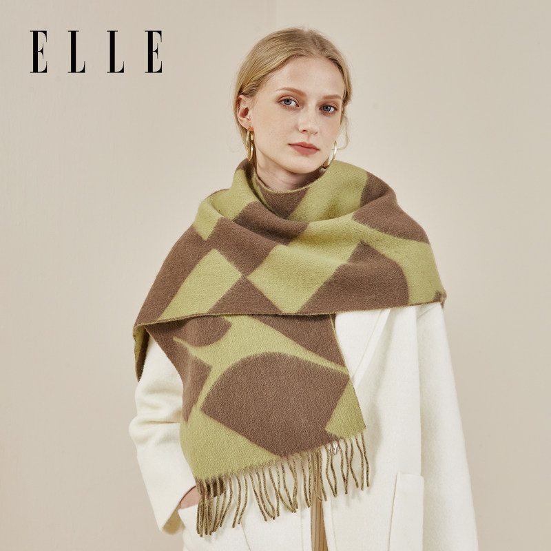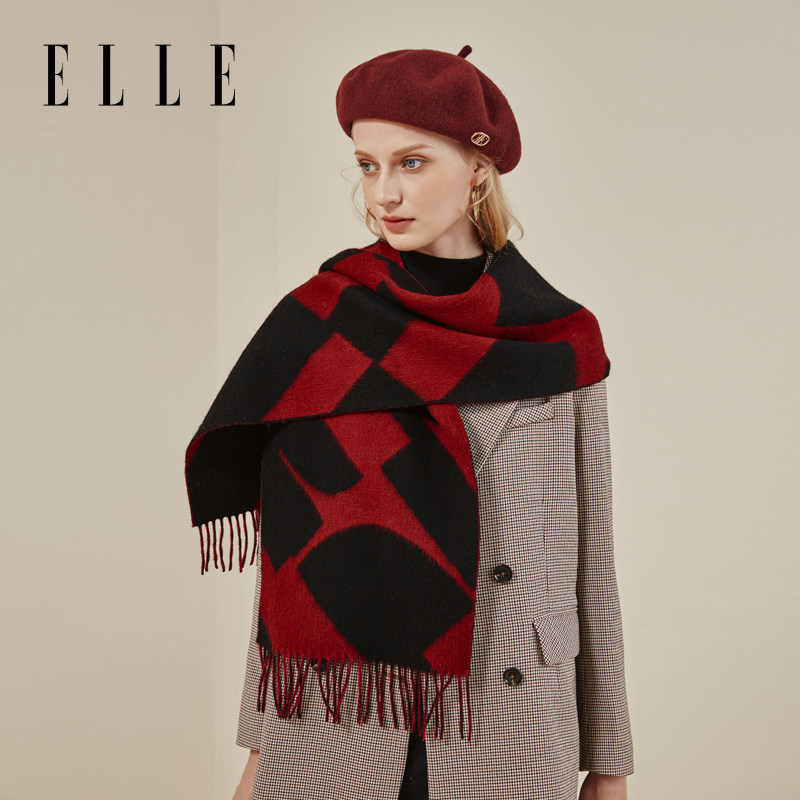ELLE100%绵羊毛围巾女士秋冬季保暖红色新年送礼礼盒护颈围脖披肩