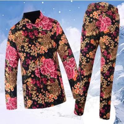冬季婆婆宽松棉衣睡衣女妈妈驼绒家居服中老年东北加厚棉袄两件套