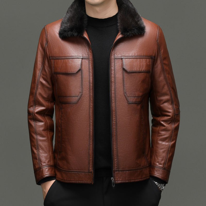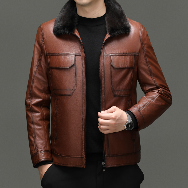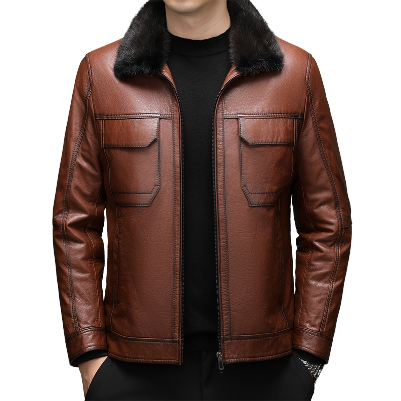 中老年皮衣外套春秋季休闲夹克中年男士皮夹克衣服宽松爸爸装新款