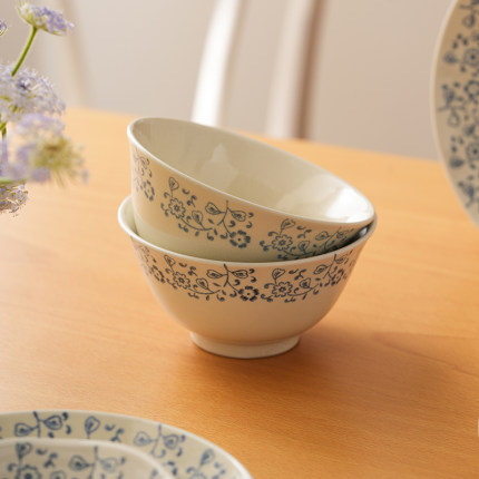 肆月手绘蔓草小碗米饭碗釉下彩