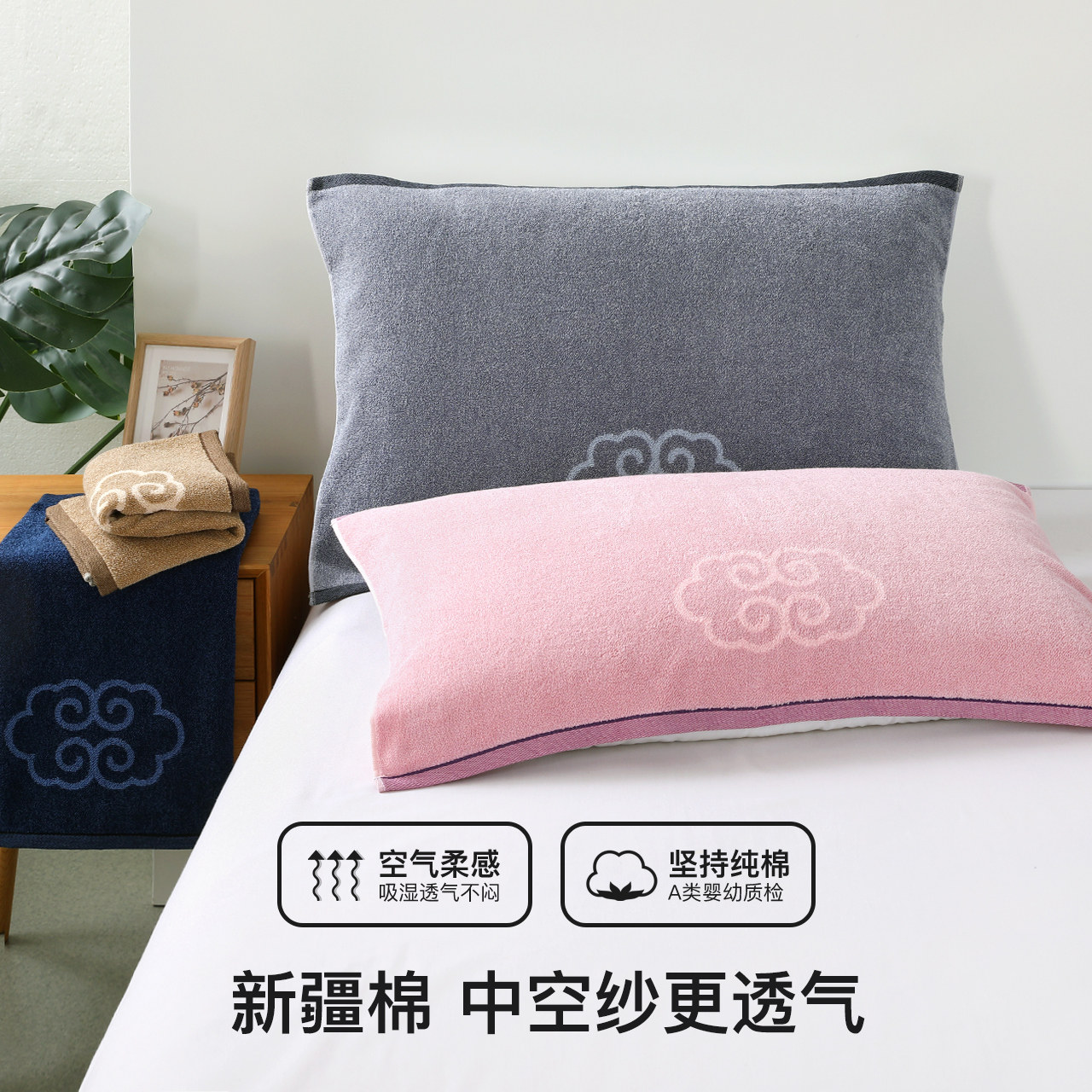 金号枕巾纯棉花式线AB纱高支枕头巾垫巾柔软透气吸汗全棉通用尺寸