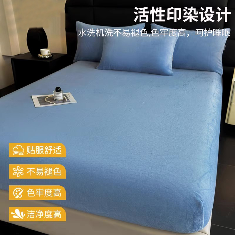 紫罗兰高克重牛奶绒纯色简约单床笠冬季加厚席梦思保暖套保暖床笠