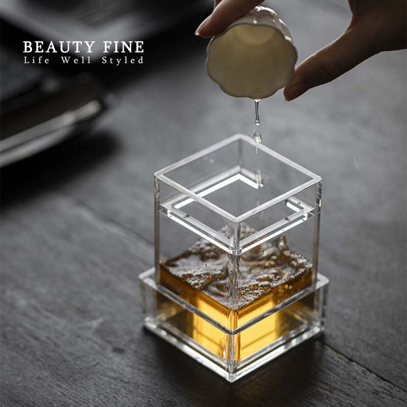 柏斐家饰 原创设计亚克力建水茶渣斗 水盂茶洗杯洗茶道配件茶渣缸
