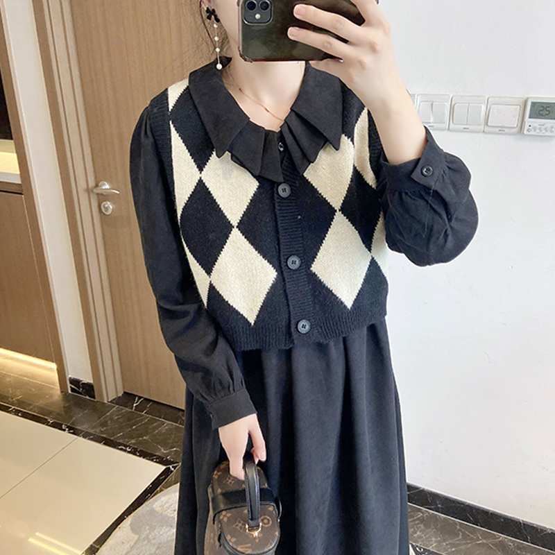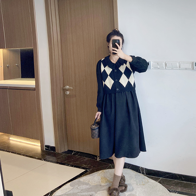 新款2024年大码毛衣背心马甲针织连衣裙两件套遮肉套装微胖mm秋季