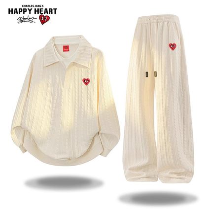 查尔斯桃心 运动休闲提花套装情侣慵懒老钱风百搭宽松透气通勤