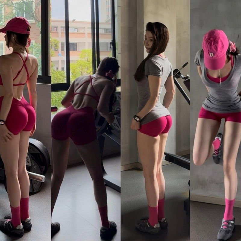 V腰显臀紧身臀王无缝短裤瑜伽健身套装三分裤细带美背运动内衣女