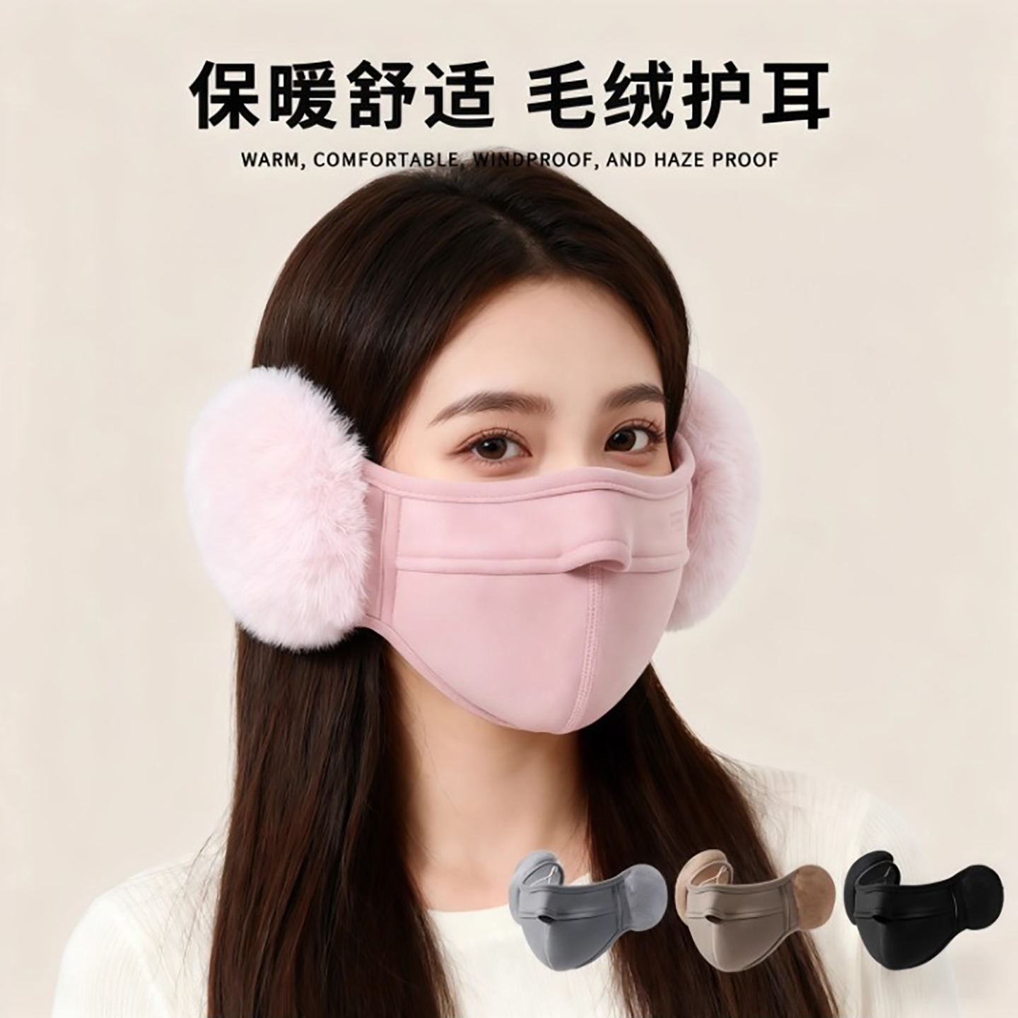 保暖耳罩口罩男女冬季2025纯棉防风防寒德绒护耳二合一新面罩耳套
