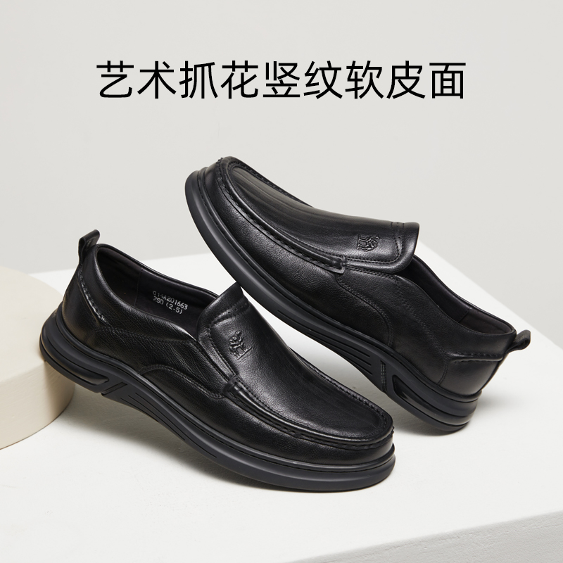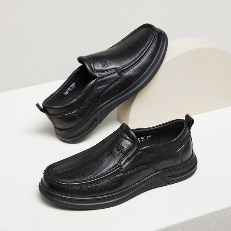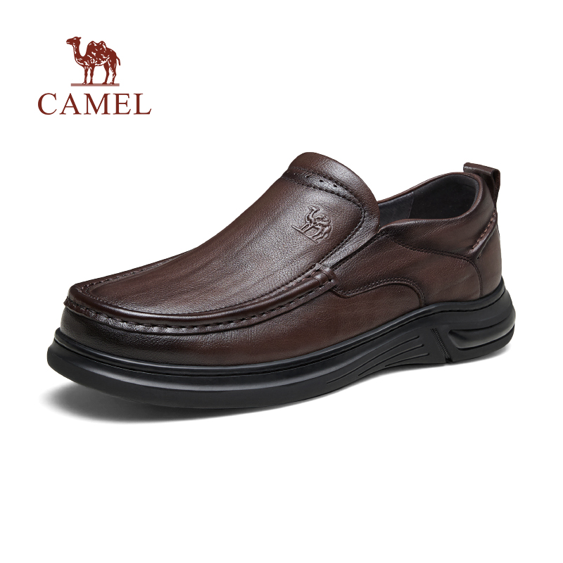 骆驼2025秋季新款竖纹软牛皮革舒适懒人乐福止滑商务休闲皮鞋男士