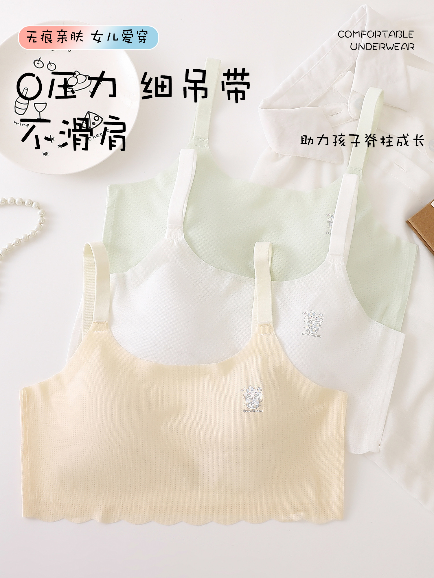 洞洞杯冰丝夏季无痕透气薄款儿童内衣固定杯发育期女童