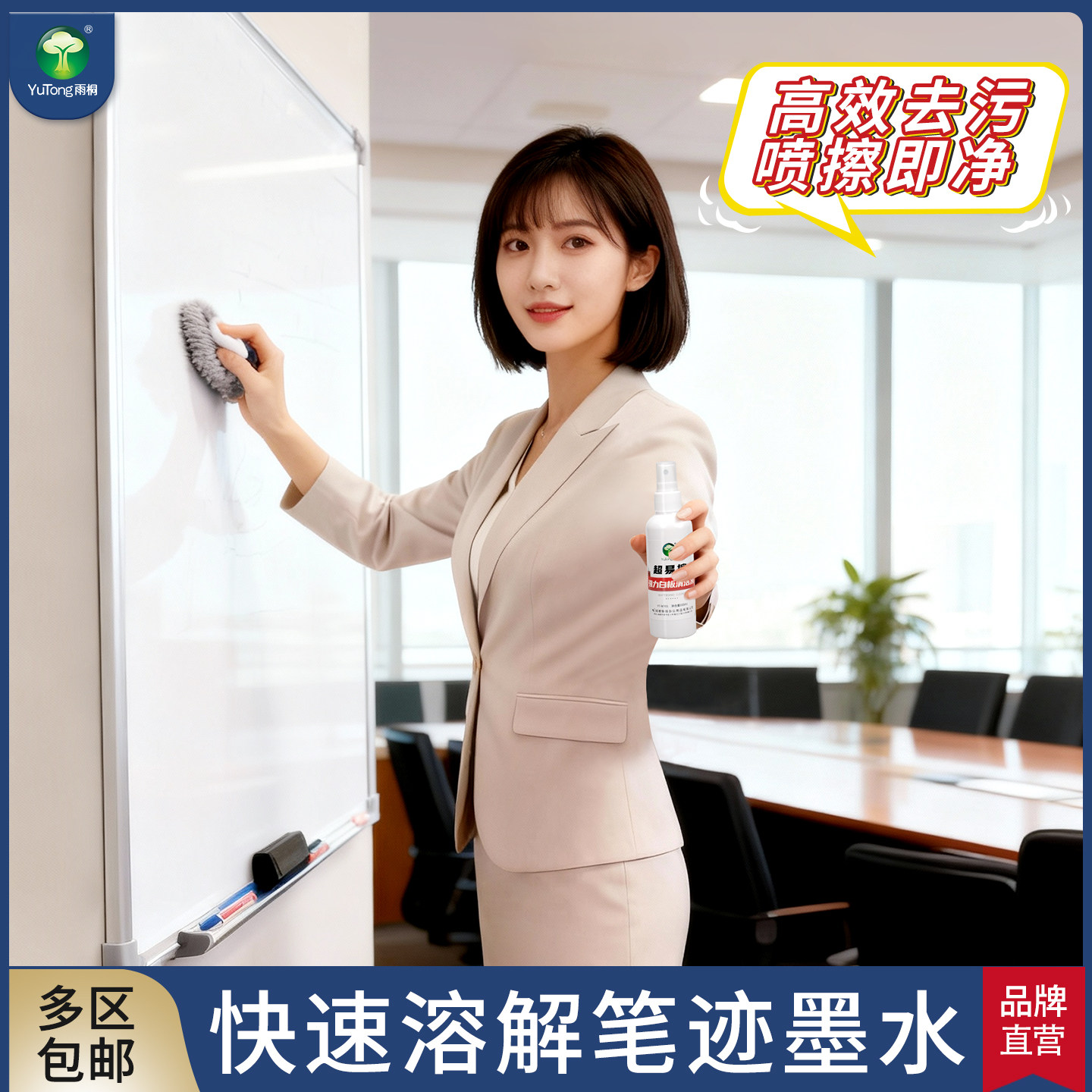 雨桐白板清洁剂办公书桌面彩笔墨水儿童涂鸦画板去记号笔油性污渍黑板专用抹布擦除大头马克笔水性清洗剂神器