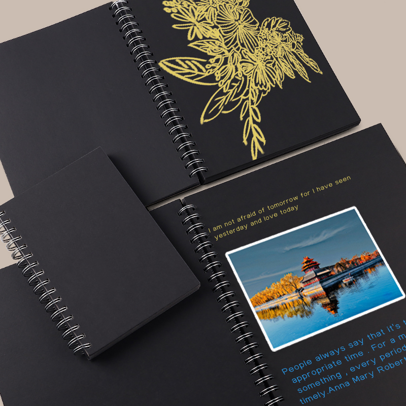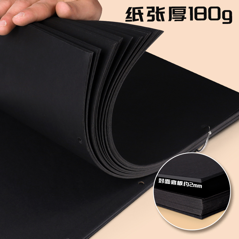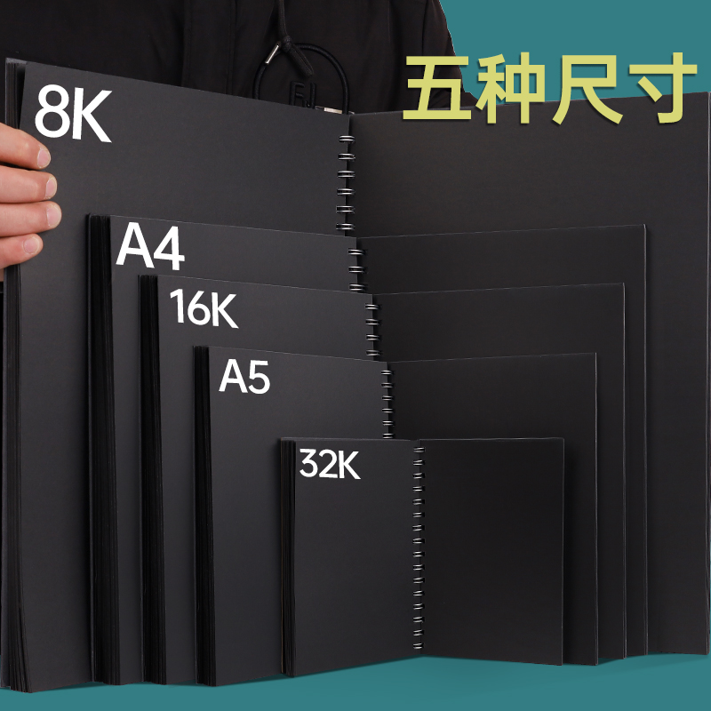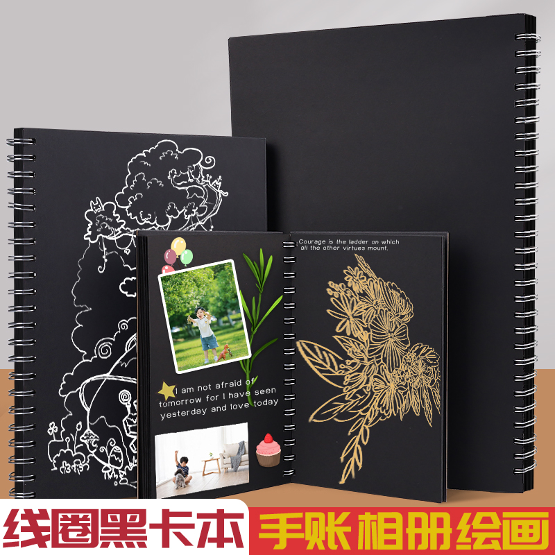 硬壳线圈黑卡纸本8K手绘涂鸦黑色卡纸画画本子A4纪念册diy相册本绘画美术生专用16K丙烯画本A5小随身迷你32K
