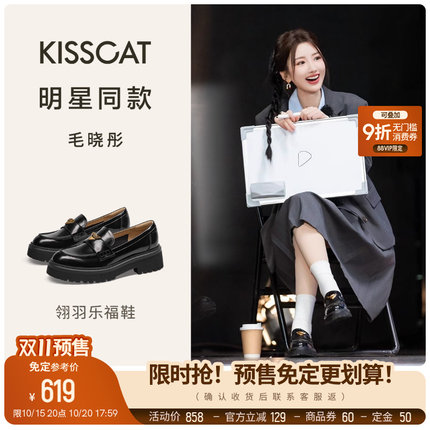 [万茜/毛晓彤同款]接吻猫翎羽乐福鞋25新黑色增高厚底小皮鞋女